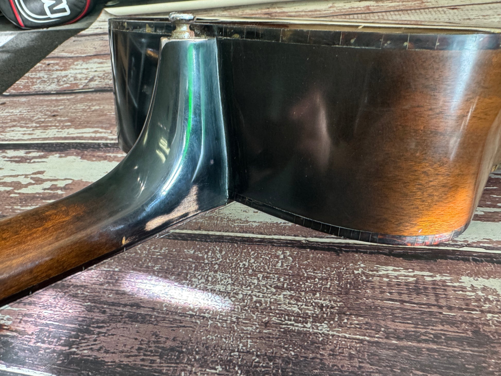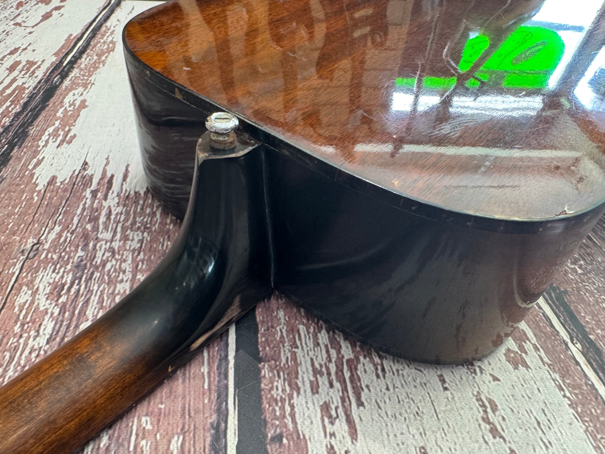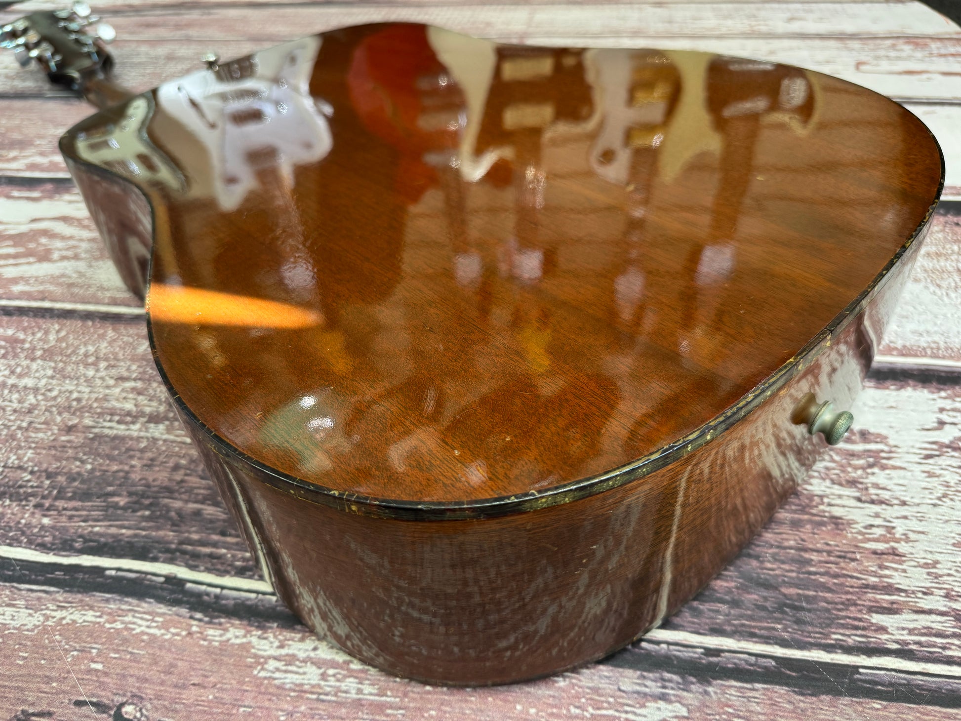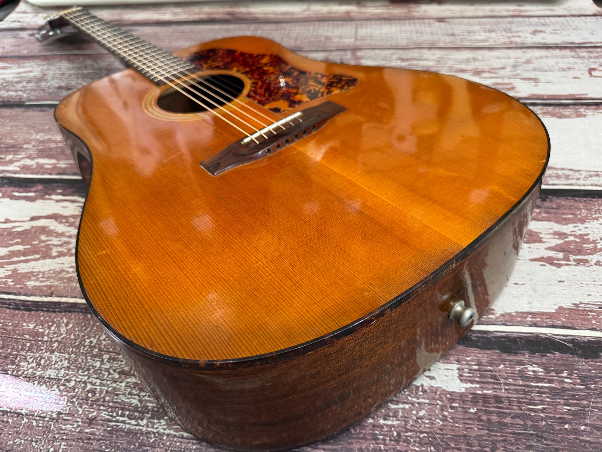 There are many battle scars and scuffs all over the guitar, but nothing seriously damaged, no neck breaks nor dead frets, no cracks in the table/sides/back.