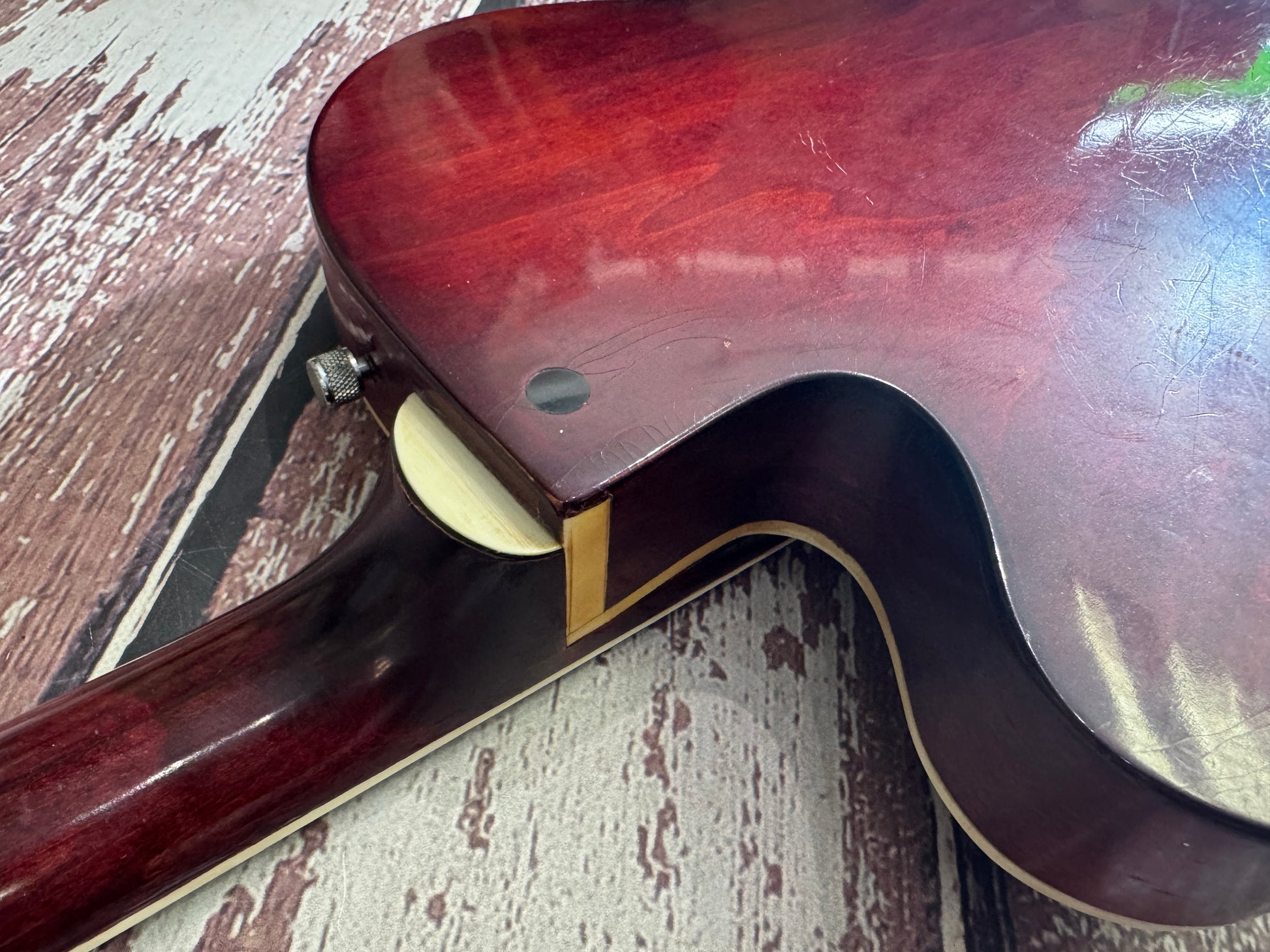 One unusual plus point, is the original binding is in great shape as all too often this degrades and cracks off in sections, but not on this one. The body has the faux "F" holes to help reduce the feedback at high volumes.