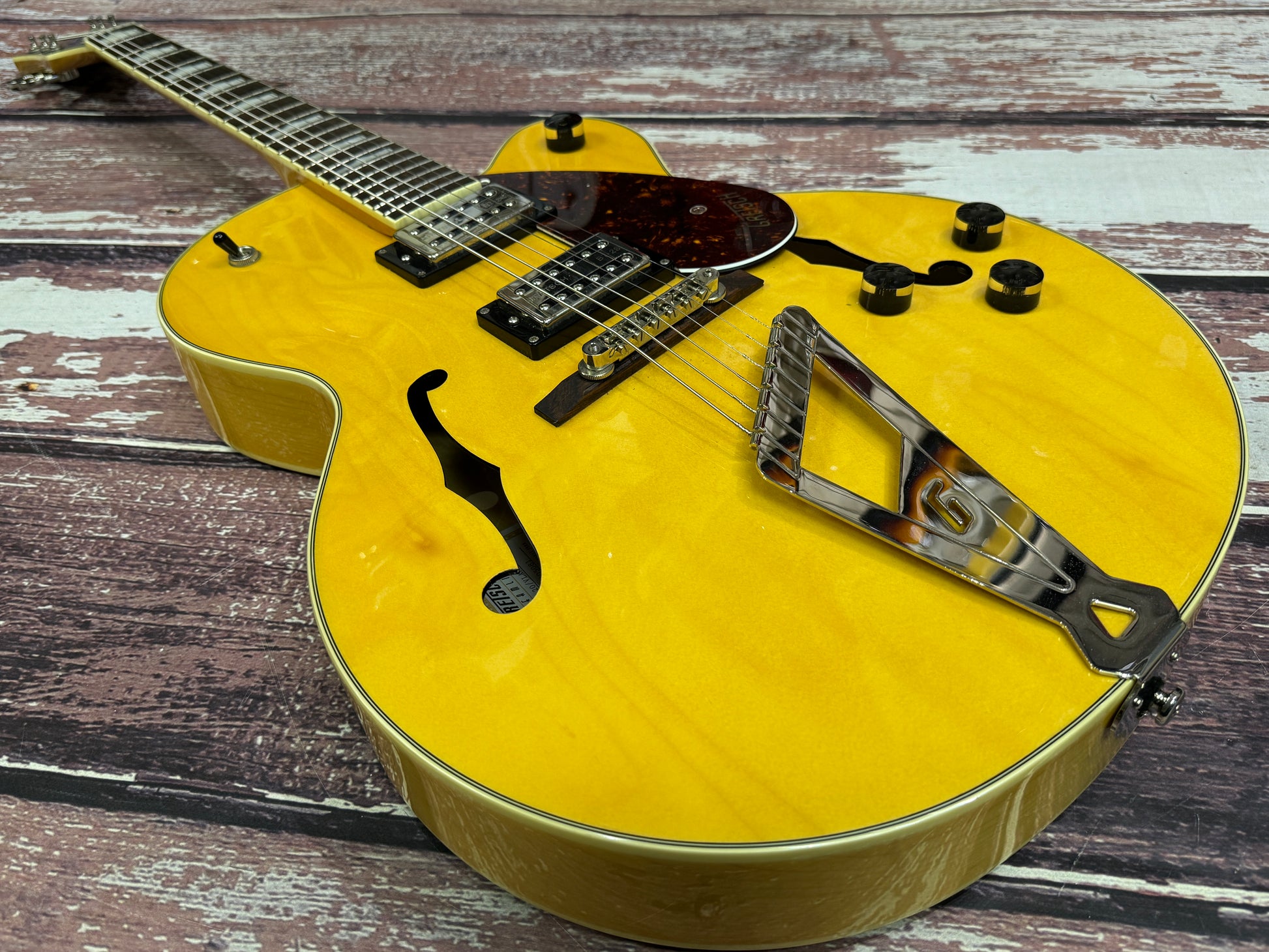- Fully hollow arched maple body for rich fullness, deep resonance and "big-body sound"
