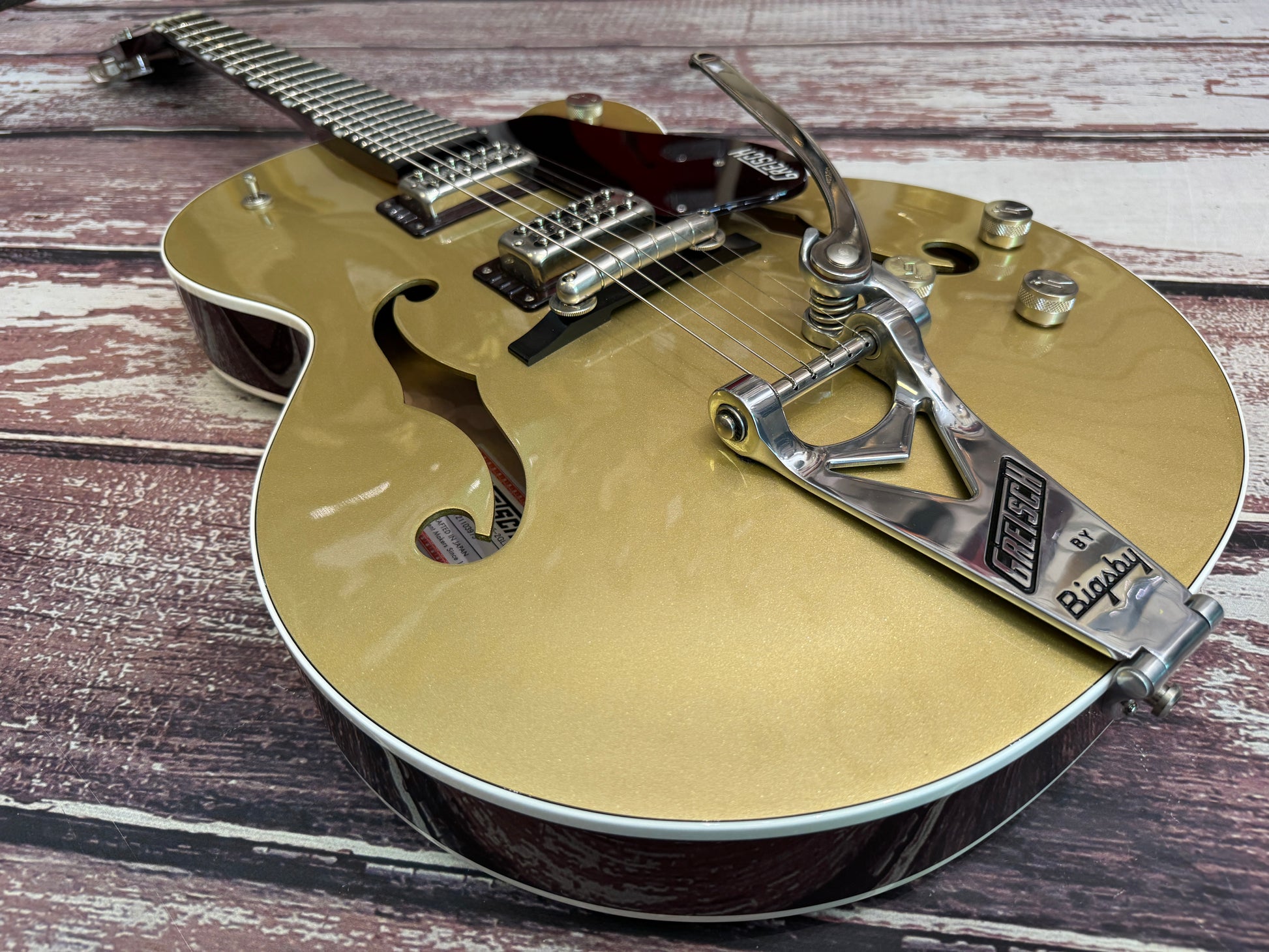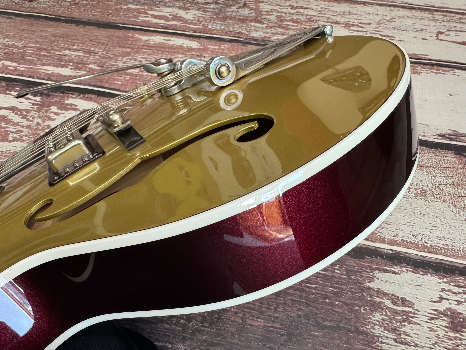 Wow, when Gretsch made a special limited edition they do it very well indeed! This 135th anniversary in a Japanese masterpiece, and the gold over dark cherry metallic is simply divine!