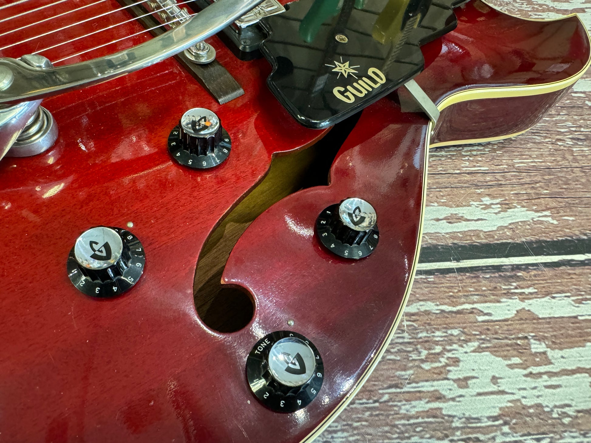 The Starfire has been one of those guitars that are so good they have remained in production for decades while getting over shadowed by Gibson semis. BUT....those that know about Guild realise just how good these guitars are, and near original vintage examples like this one are darn scarce!
