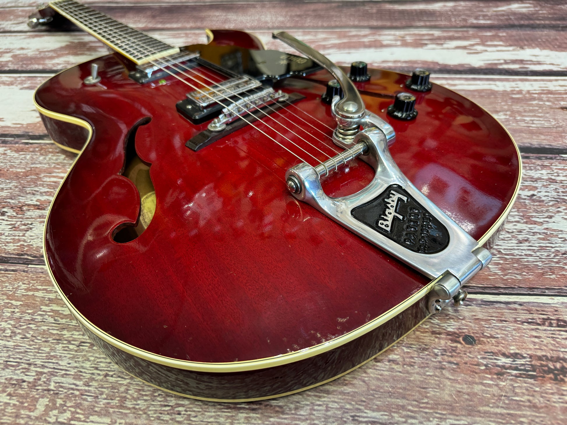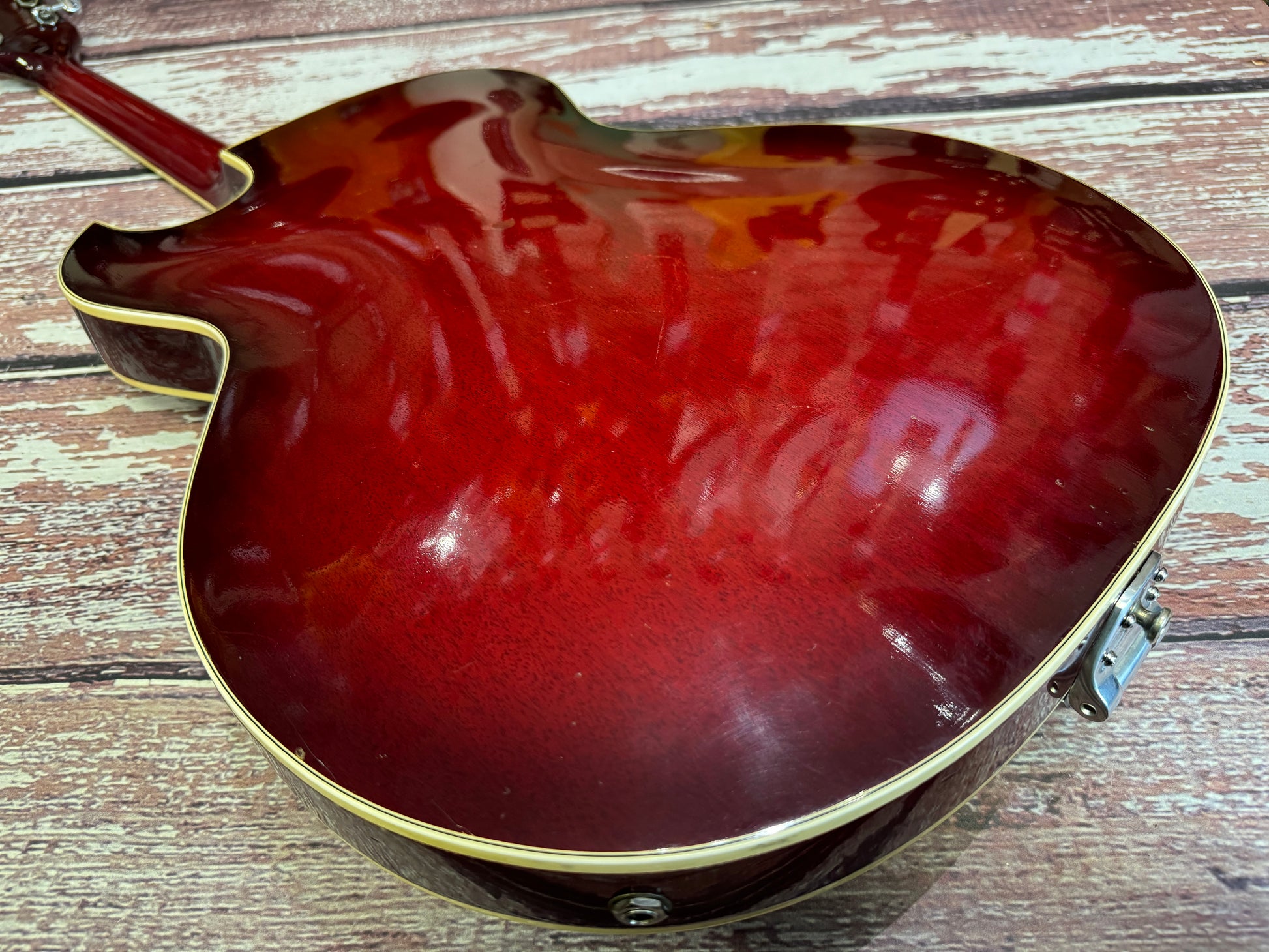 Aside from one replacement tuner (period correct) this is all original and in the perfect condition, not mint yet not heavily worn, just exactly how a vintage guitar should look and feel. The trans cherry burst has aged to perfection and adds to the appeal. It plays remarkably well with an easy action. All electrics are working fine and frets are excellent. This really is the ideal vintage guitar as it fits into both player, and collector categories.