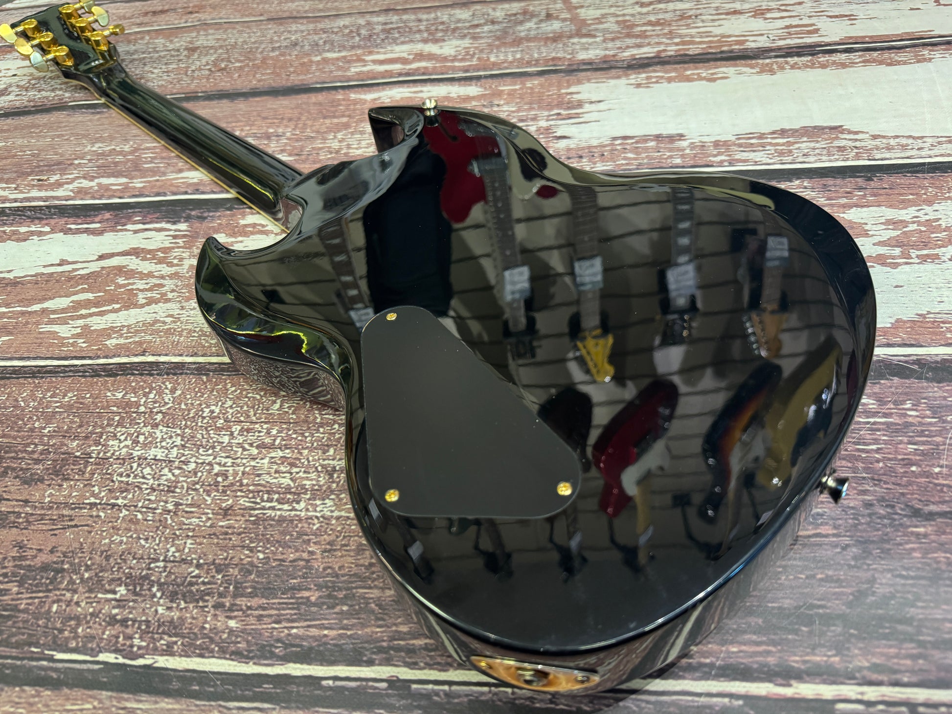 For a great rock guitar on a budget this will fit the bill nicely, it is mid way between and SG and a Viper in style and is a classic twin humbucker electric.