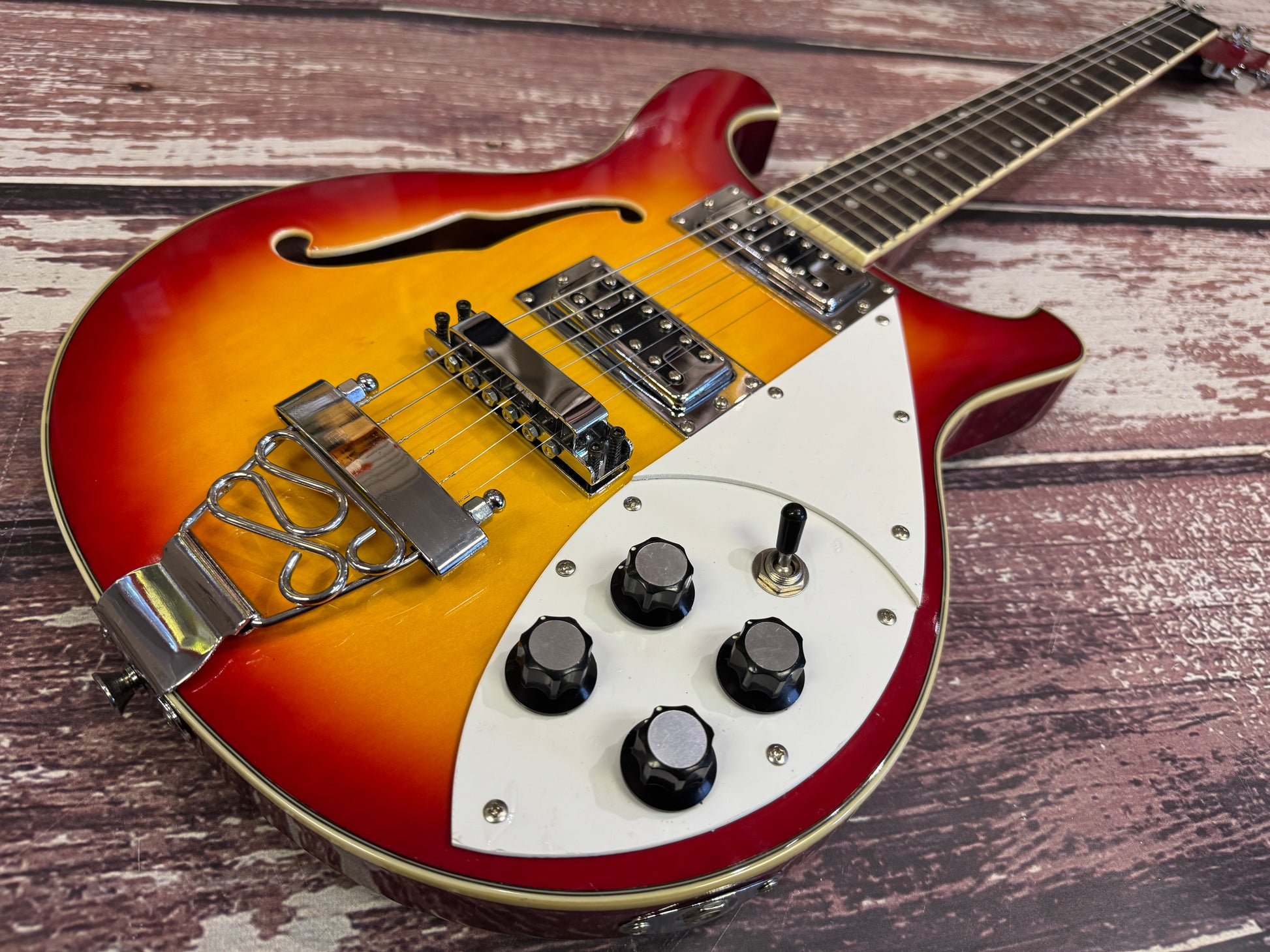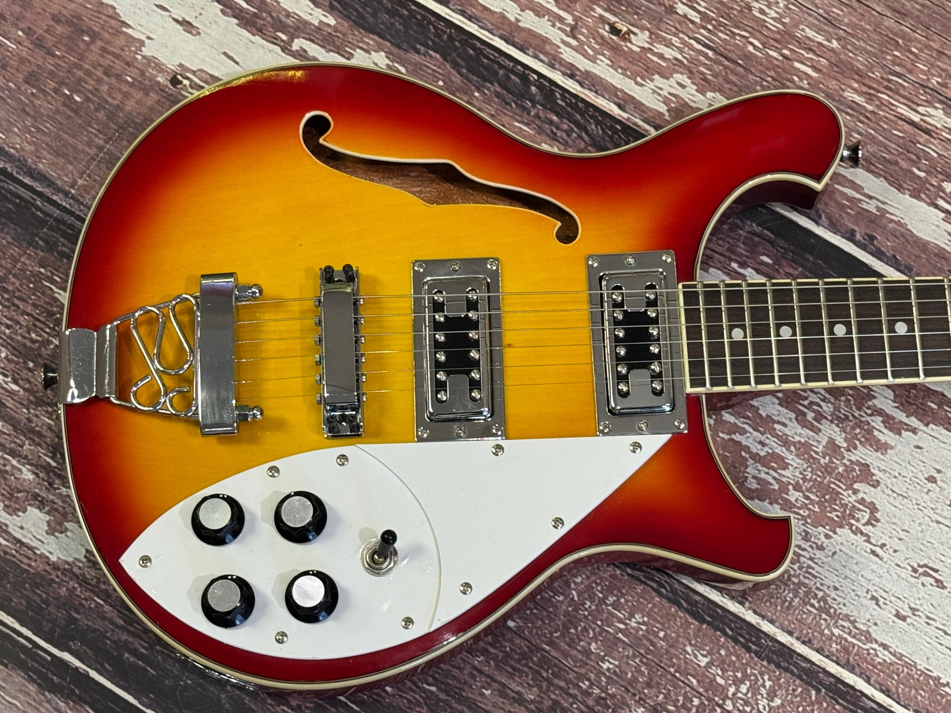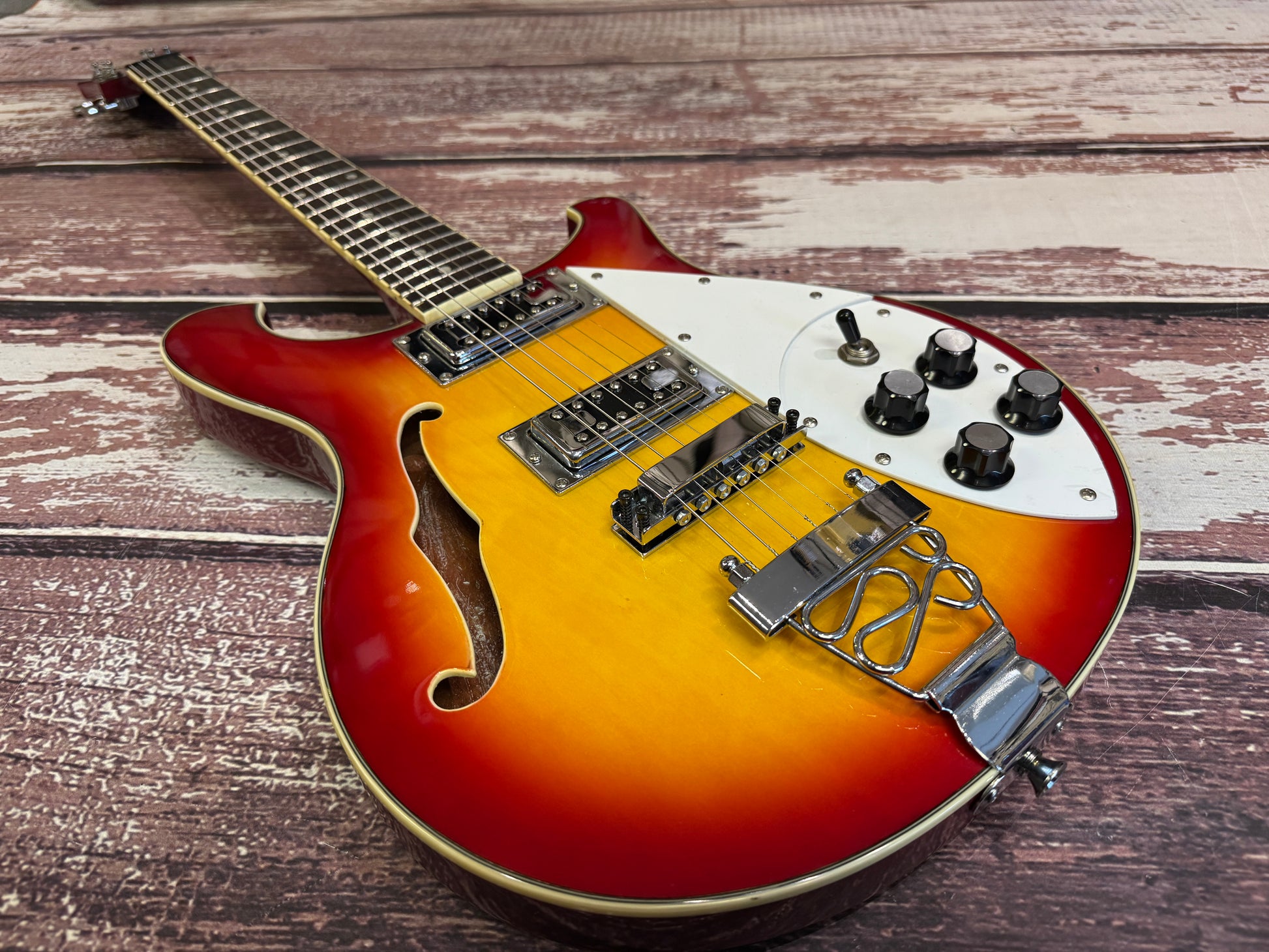 Here's a cheeky little version of a well know USA brand, however this is not a replica of any one specific model, it has a small body but keeps a full 24.7" scale length.