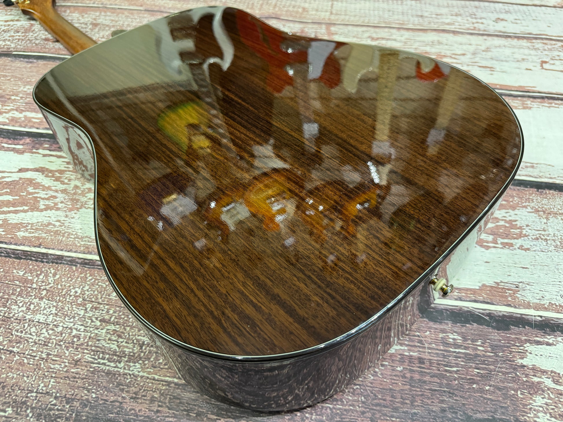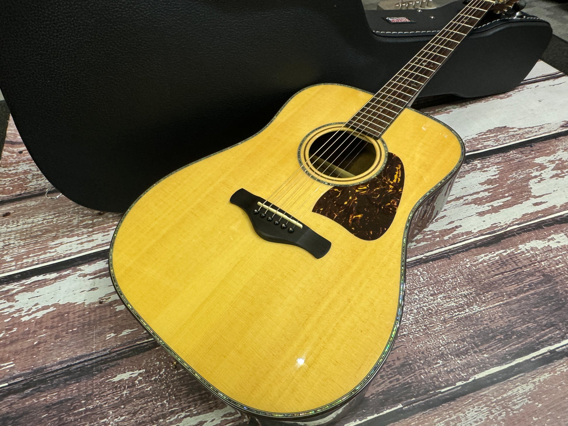 This is currently one of the best value acoustics we can offer, it is a high end AW model with a solid top and rosewood back and sides, plus very detailed binding, inlays and rosette.