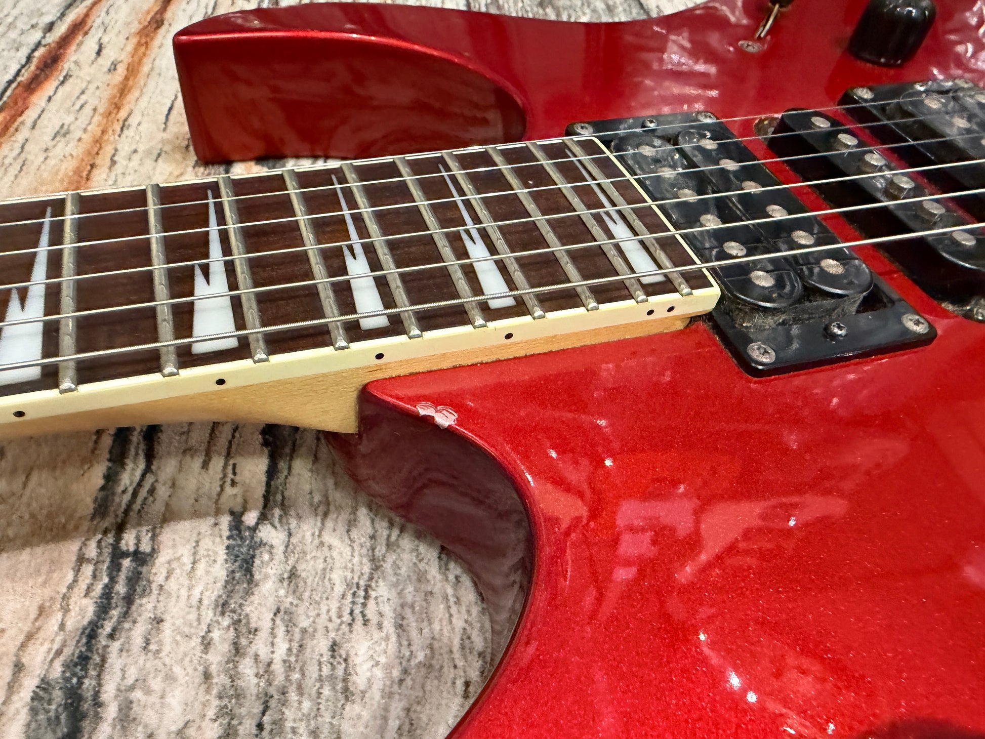 Please see the pictures are there are a few chips out of the paintwork, but aside that the guitar is all good, no issues with the frets, electrics, hardware or neck, it plays well and has been set up ready to go.