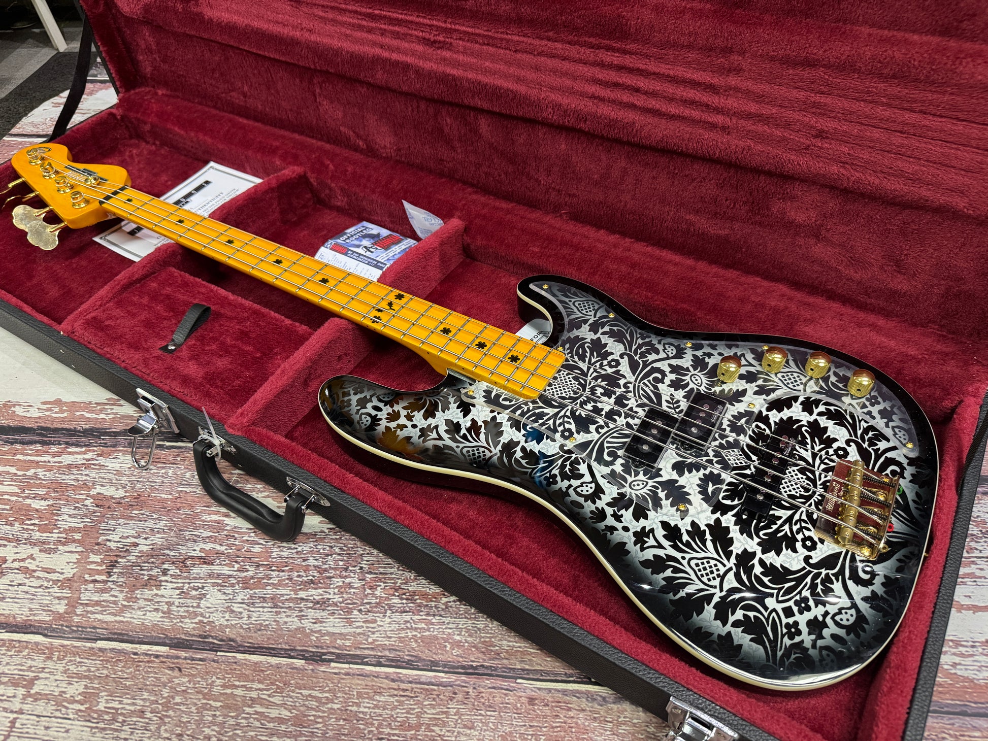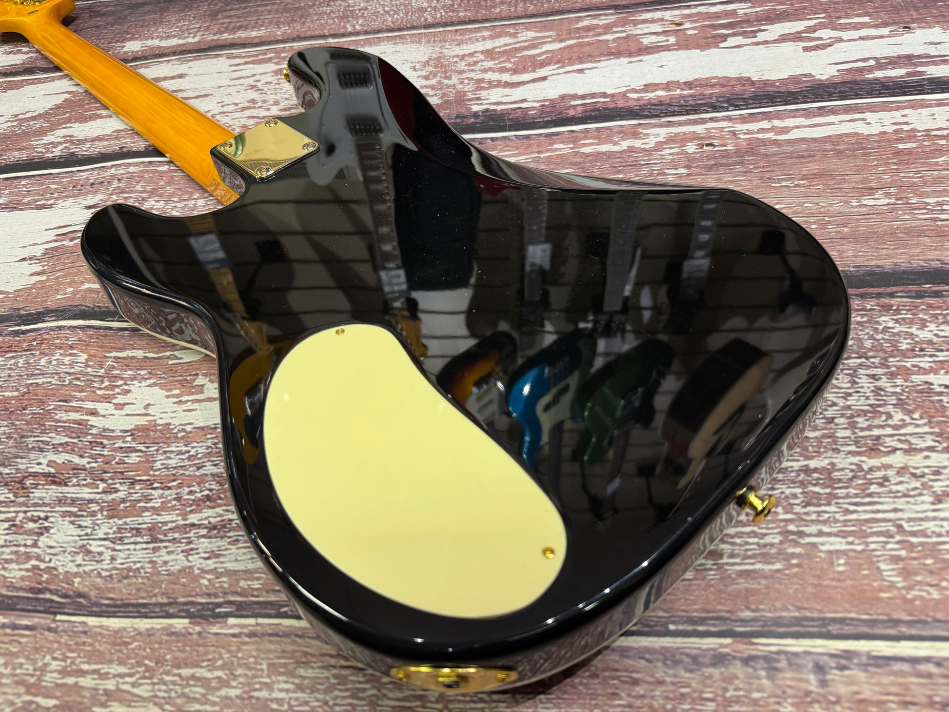 USA Alder body with floral pattern front, Blackburst finish with tidy cream binding.