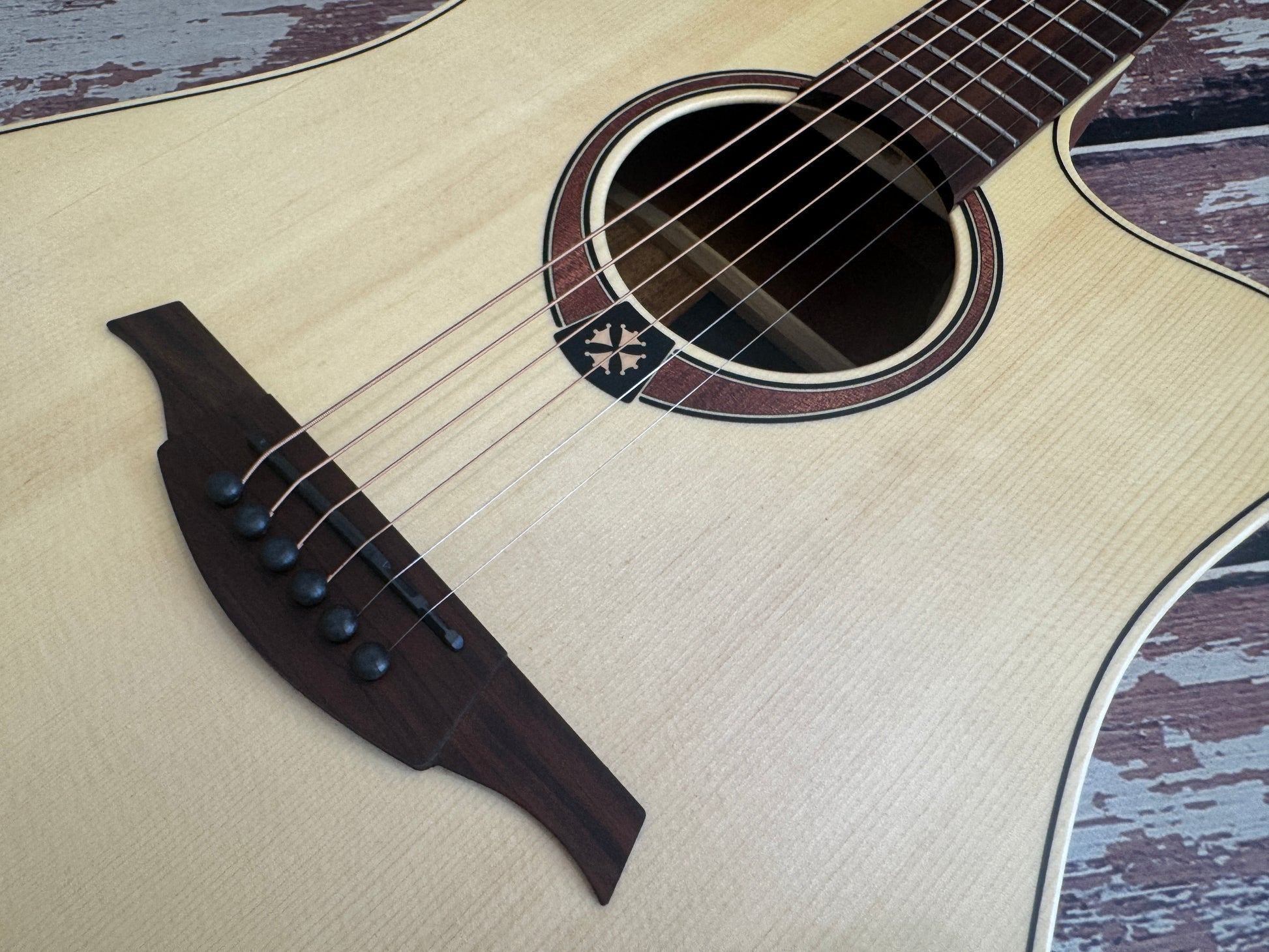 Seldom do we see a straight acoustic that has a cutaway body design, don't ask me why, it is just one of those mysteries of the universe I guess!