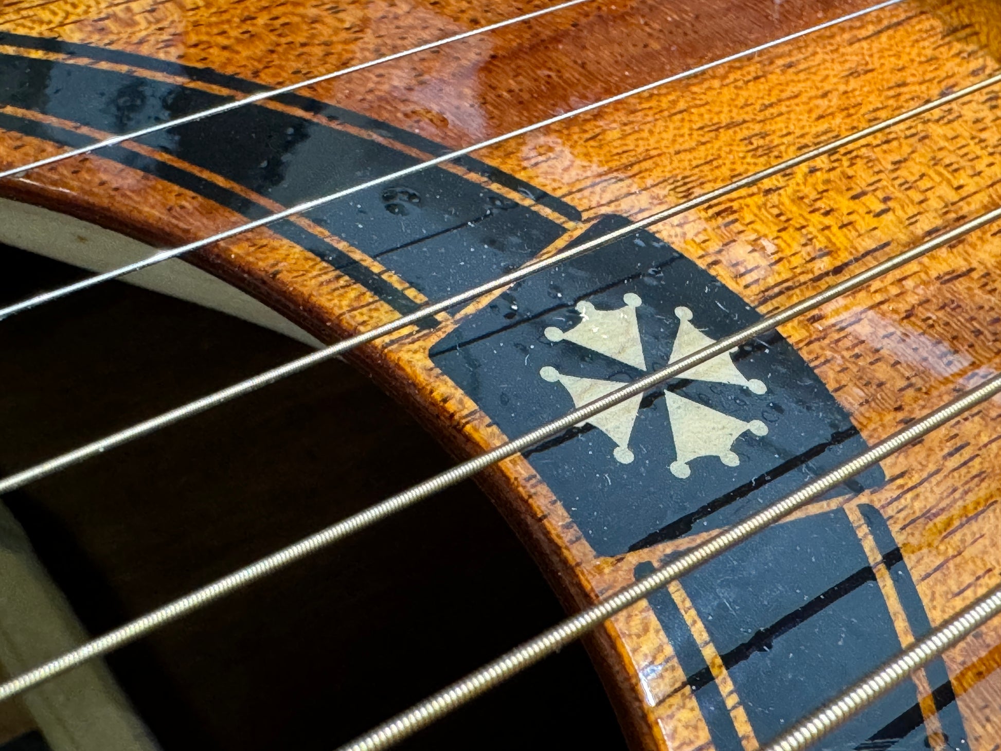 There is a finishing defect on this guitar with small bubbles in the lacquer visible in certain light/angles.