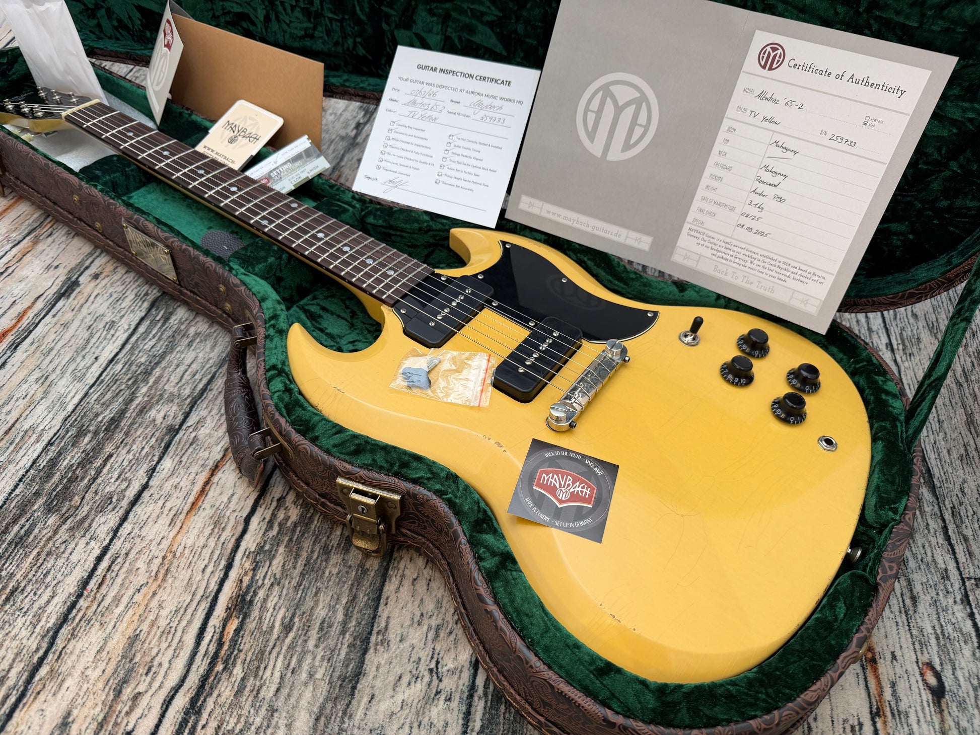 This one is very light and a joy to play, it is well balanced and as expected from Maybach, is a players dream, with great attention to finishing. Simply put this is a killer instrument and hand on heart, I would put it on a par with anything USA made from a custom shop if not a tad better.