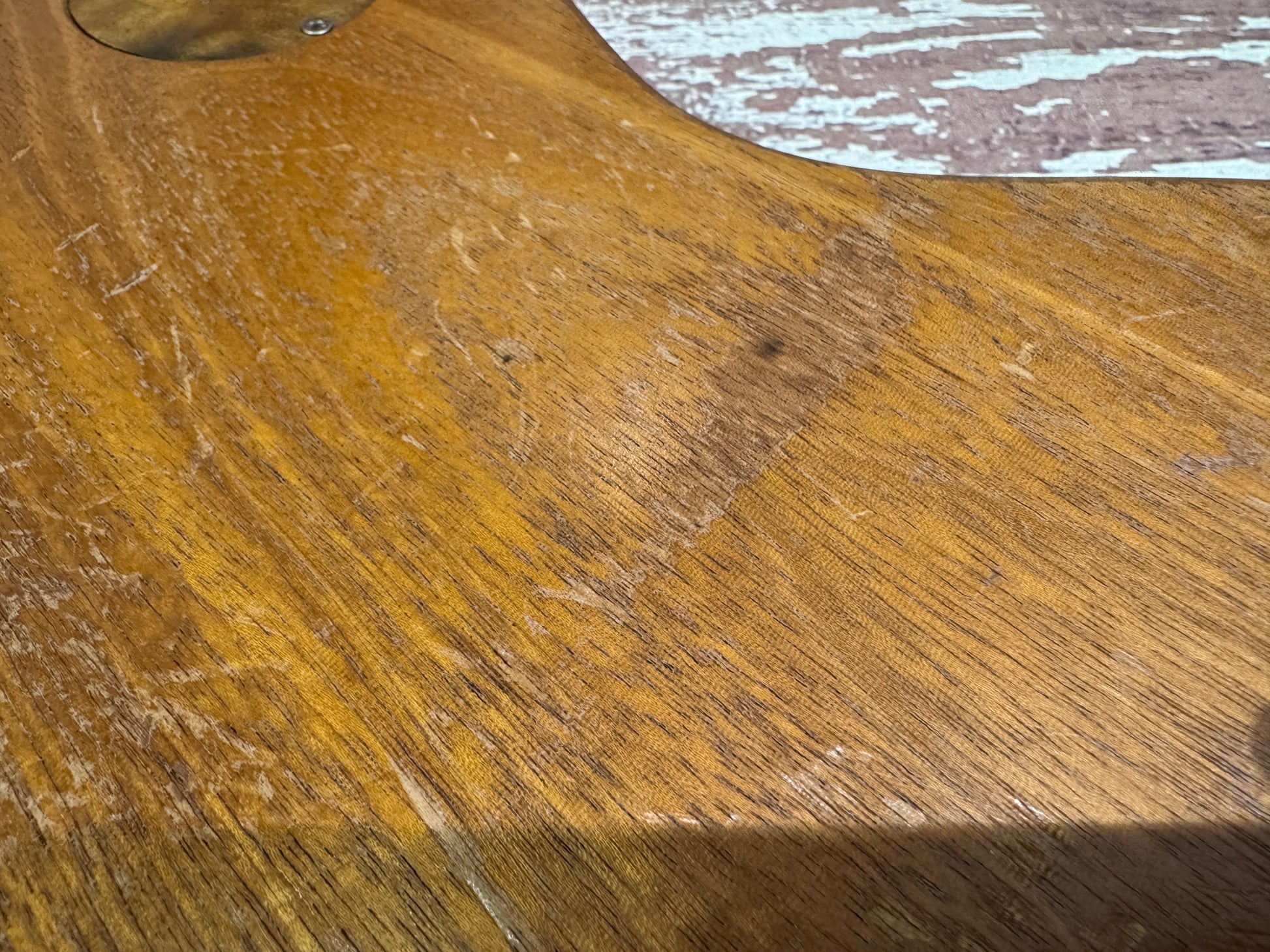 This example has been a players guitars and has wear on the back as shown plus minor marks from use, there is a "knot hole" in the top, a natural quirk of the timber.