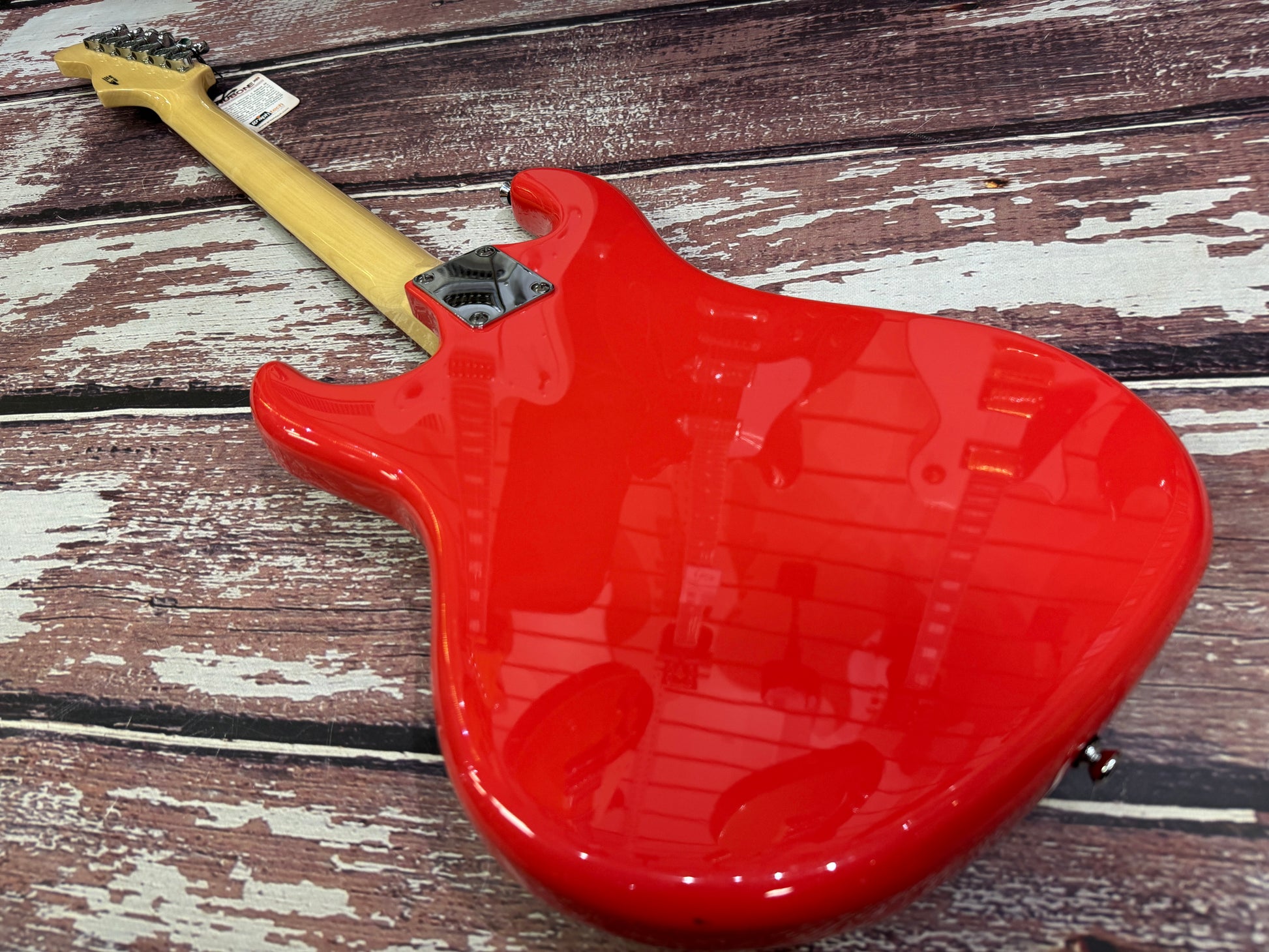 With a 3 ply scratchplate, immaculate Fiesta Red finish and new Rapier headstock logo, this guitar does indeed look visually very impressive. Stunning looks aside, modern upgrades also include pickups, internal wiring and controls which have all experienced Entwistle’s magical touch.