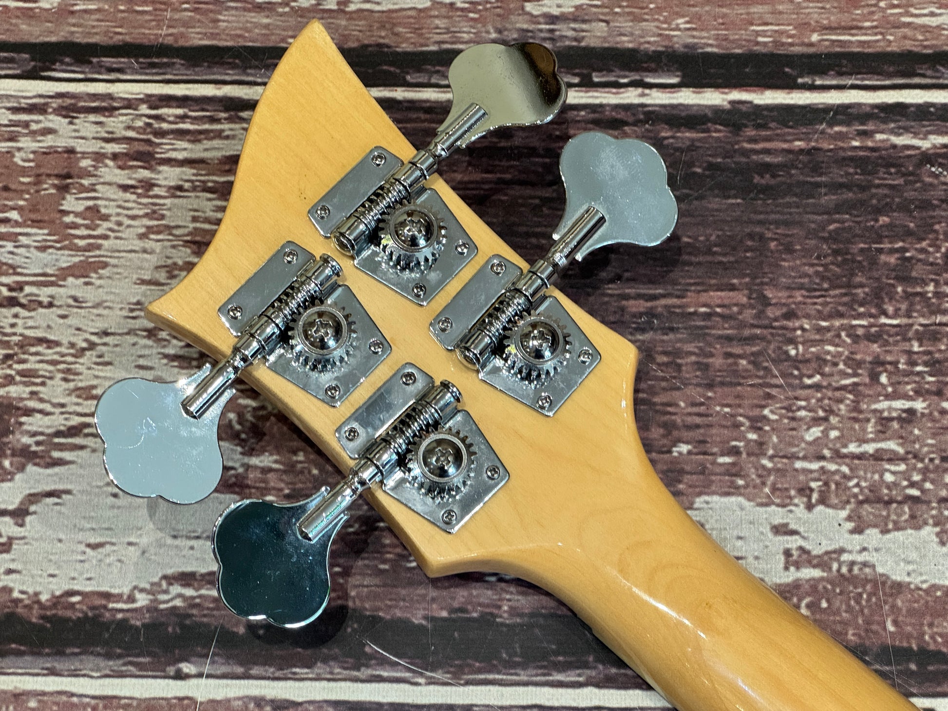 OK lets not take life too seriously! This is a bit of fun, a entry level bass but not the usual P-Bass or Jazz Bass style. Very loosely based on a 4001 this is perfect for learning on.