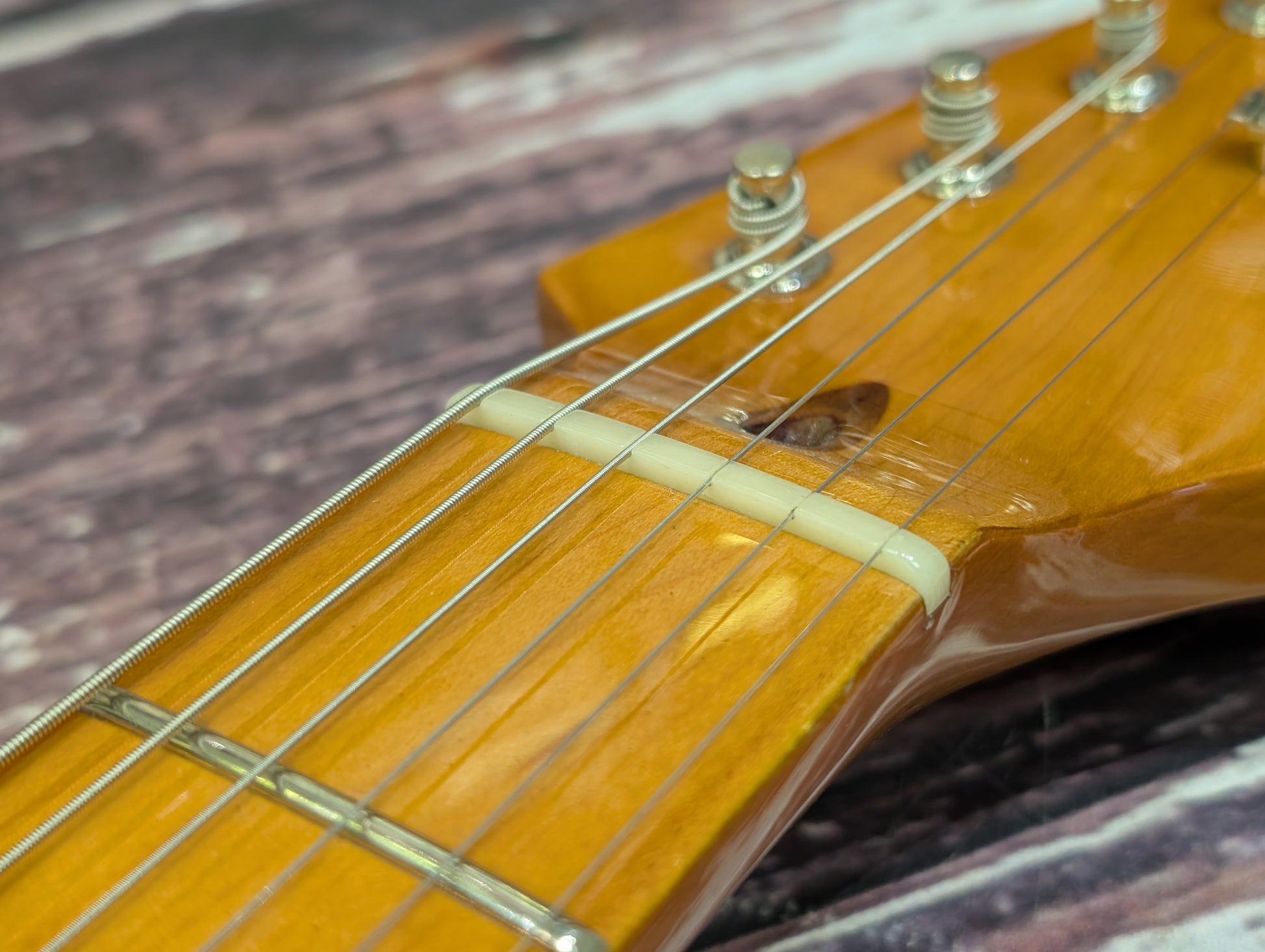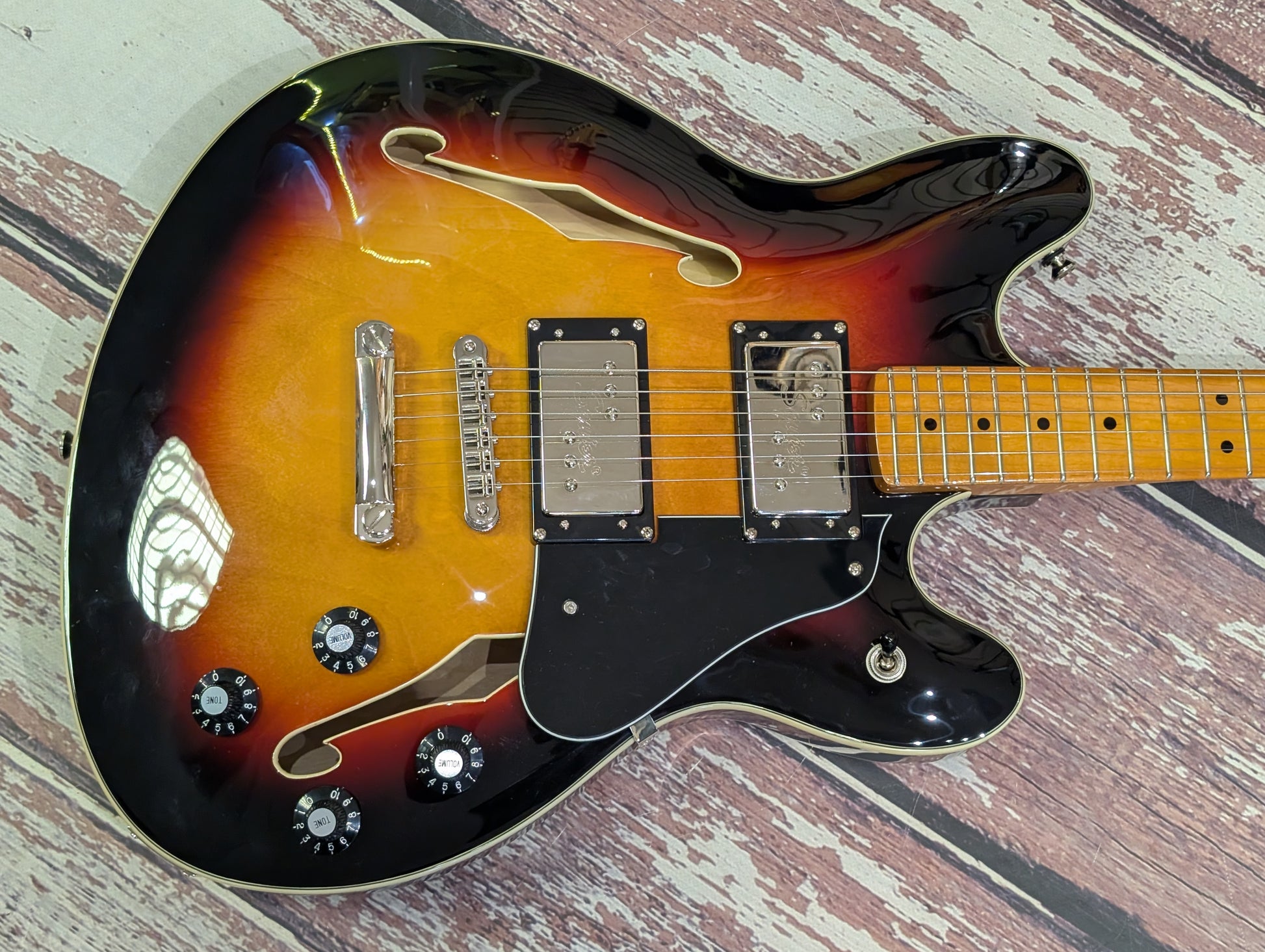 It's rare that we get a guitar in, and have to do absolutely nothing to it, to prepare it for sale. That's the case with this stunning Squier Classic Vibe Starcaster. The previous owner recently had this professionally set up, and a new bone nut fitted. Whoever did this work did a spectacular job, as this plays as well as guitars which are multiple times the price. The quality of Squier really is excellent nowadays - you're not getting an inherently inferior instrument - and it goes to show just how pivotal a good quality set up by professional techs (like us, hint hint!! 😉) can be to playability.