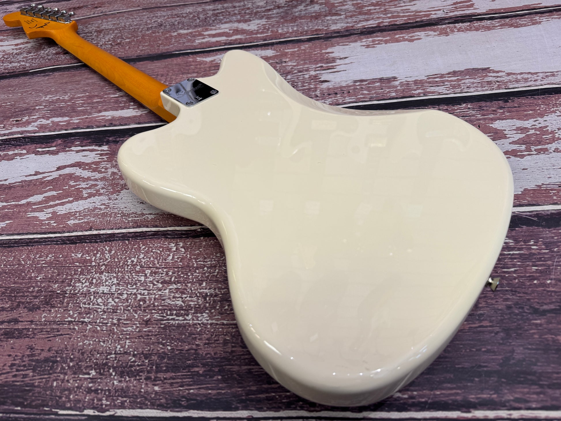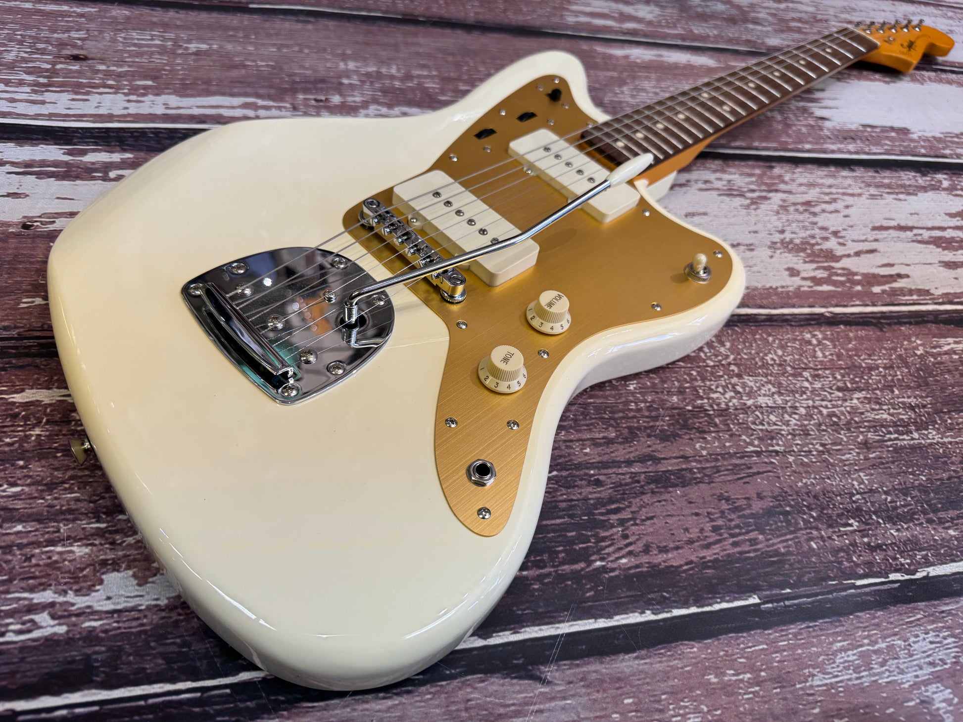As you may, or indeed may not know, this signature model was produced for a short time then discontinued, but thanks to demand it was reissued. This. is a fabulous 2019 example in near mint condition. This has a pair of P90 pickups a standard Jazzmaster wiring, which offers a 3 way pickup switch through the lower volume and tone knobs, plus a switch to engage the "rhythm" circuit, this is the neck pickup through the upper volume and tone rollers, with a darker overall tone.
