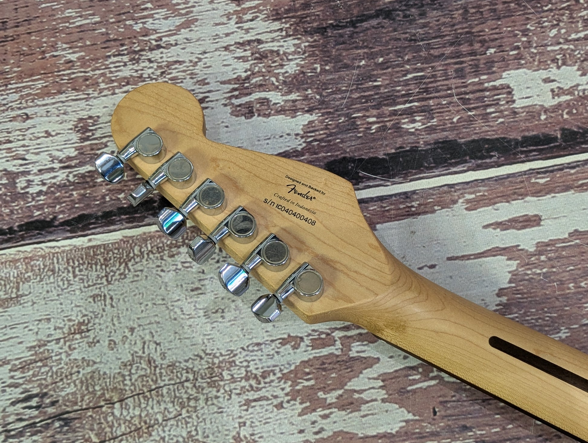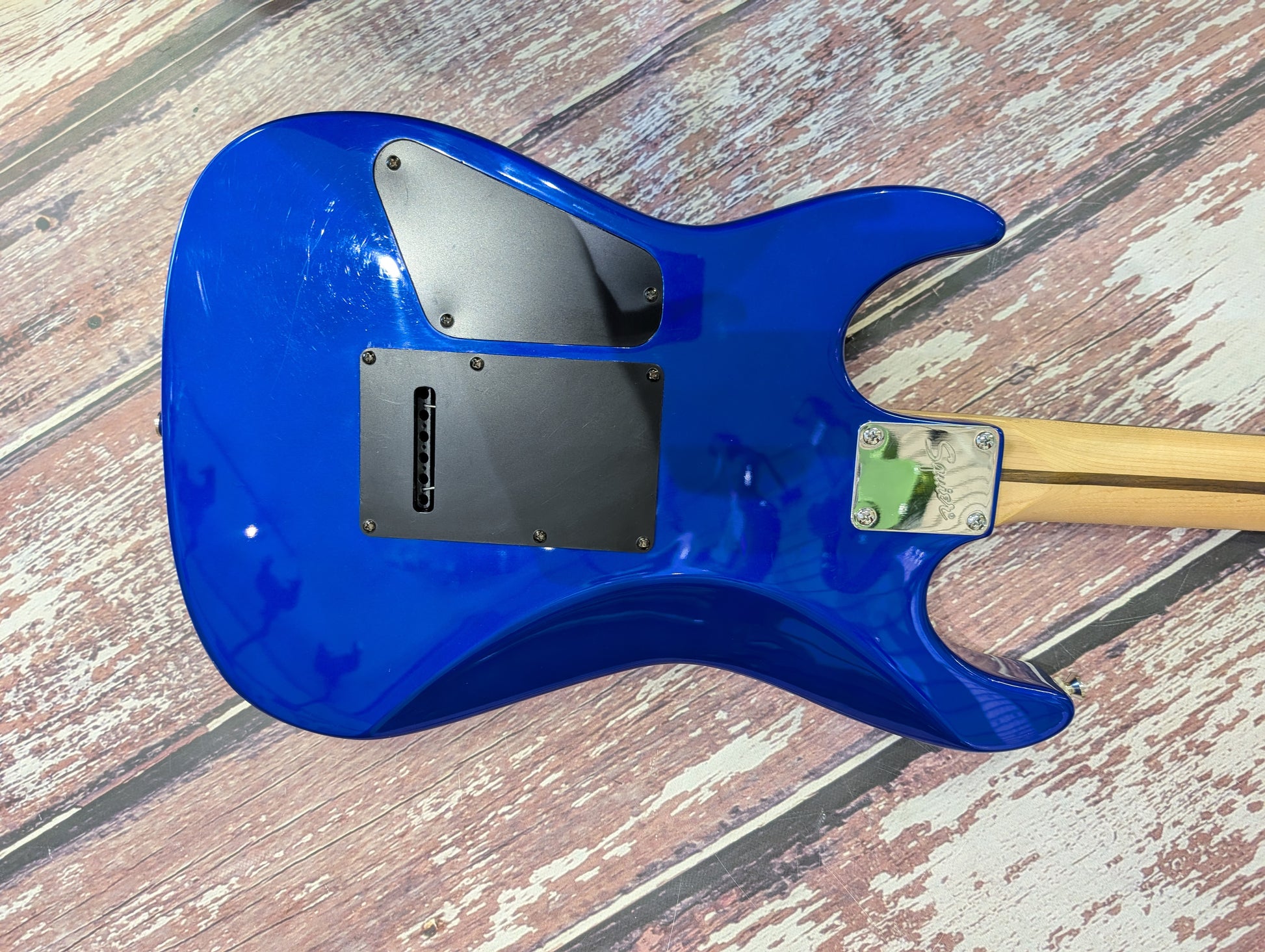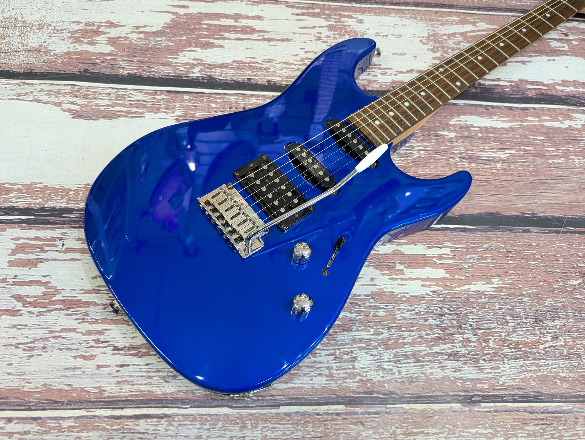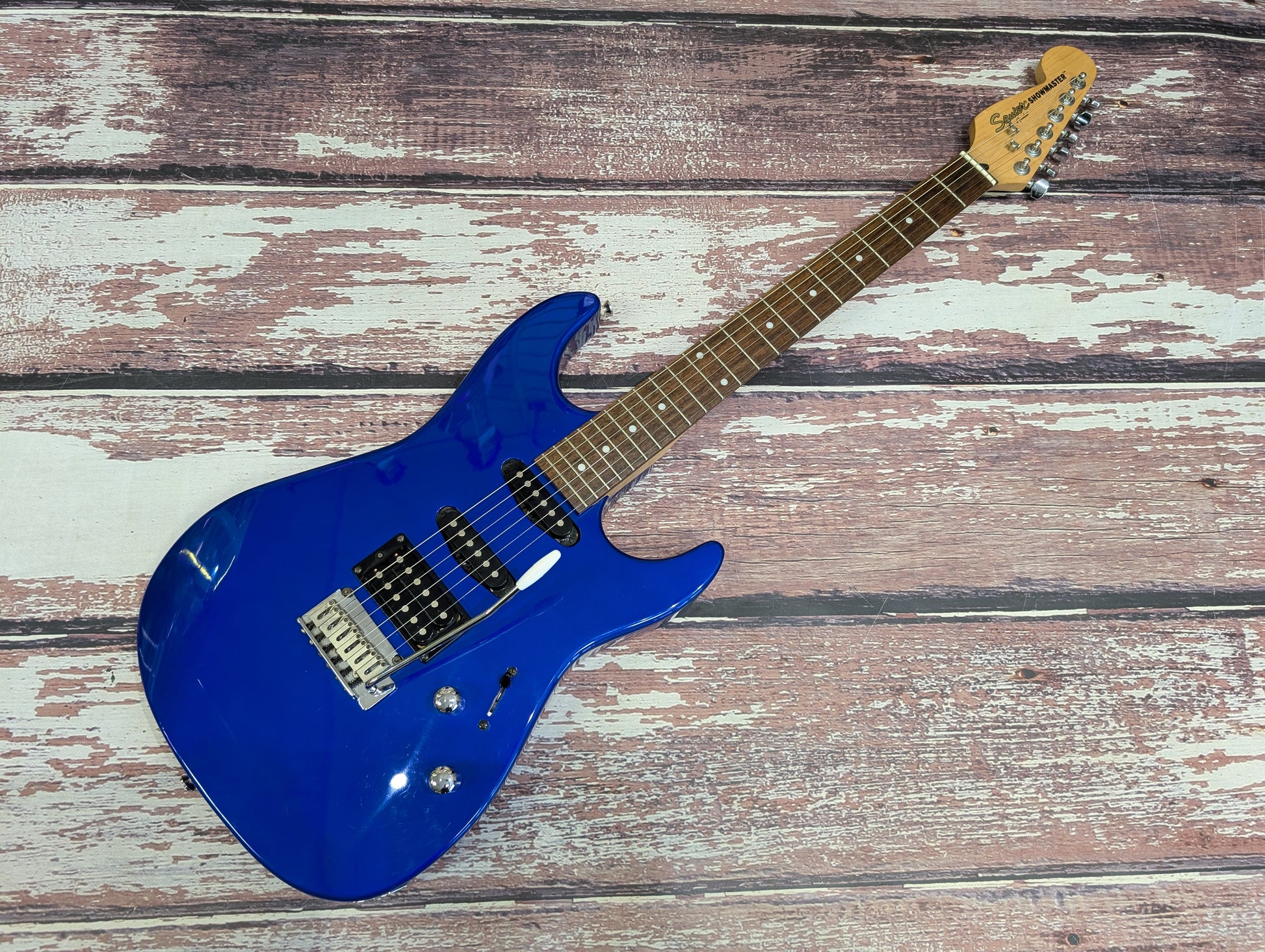 Rock n Roll!! The Squier Showmaster is an Indonesian made Super-Strat model from 2004. You'll probably either love or hate the reverse headstock, but I do think it looks rather cool. It's an HSS pickup configuration, with an Alder body in 'Cobalt Blue' finish, and is in good condition apart from a small scratch below the bridge.