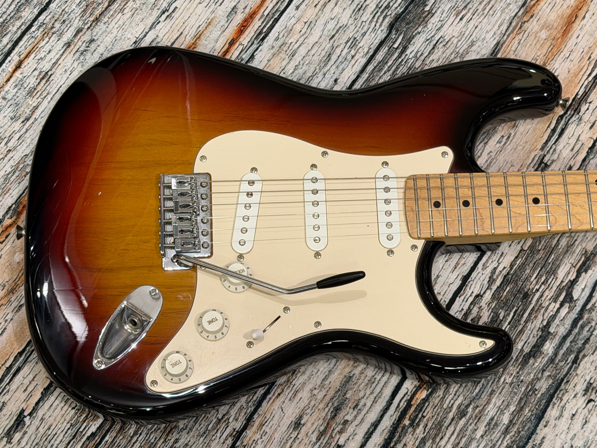 This one looks striking with classic 3 tone sunburst body and maple neck.