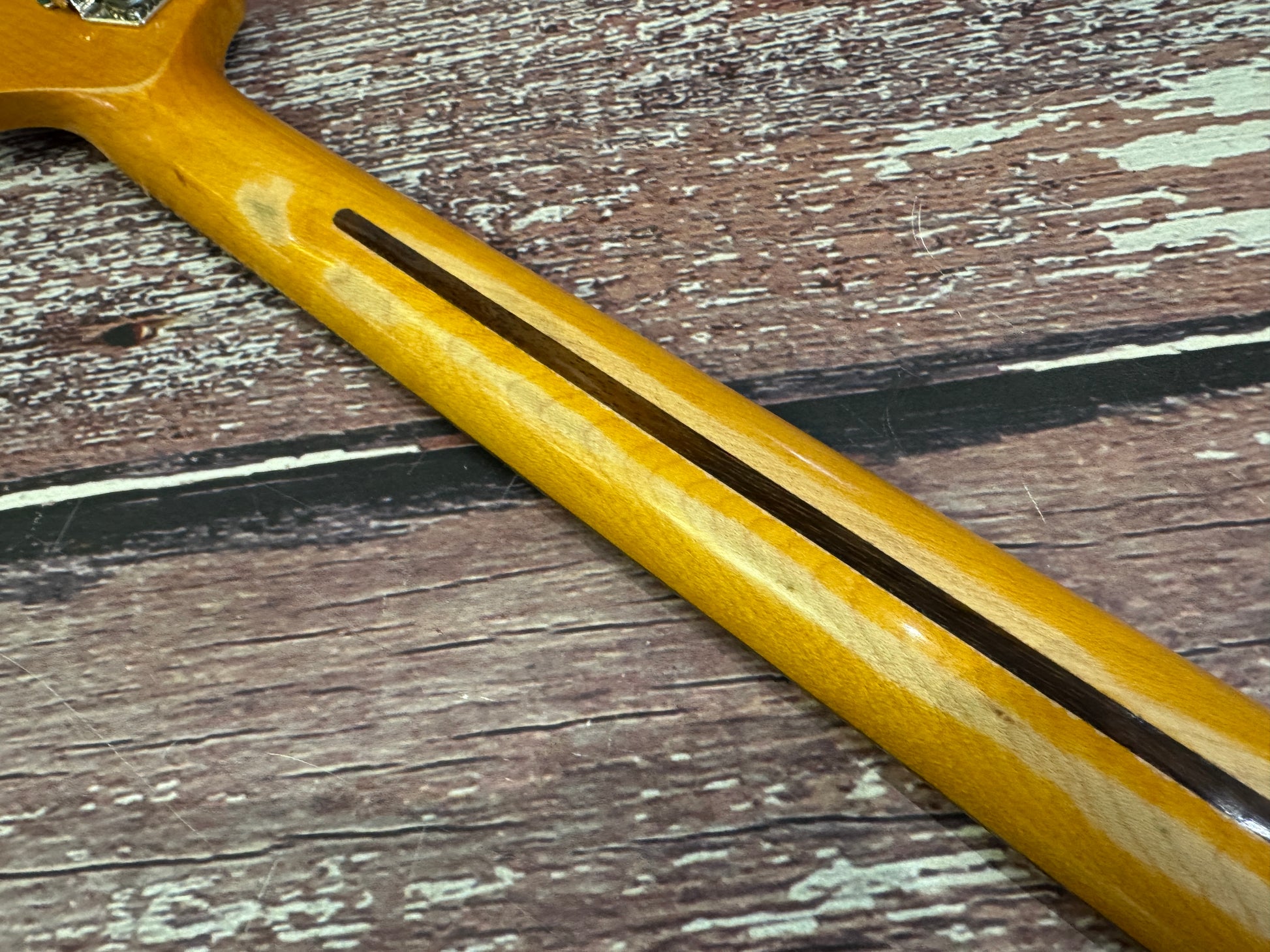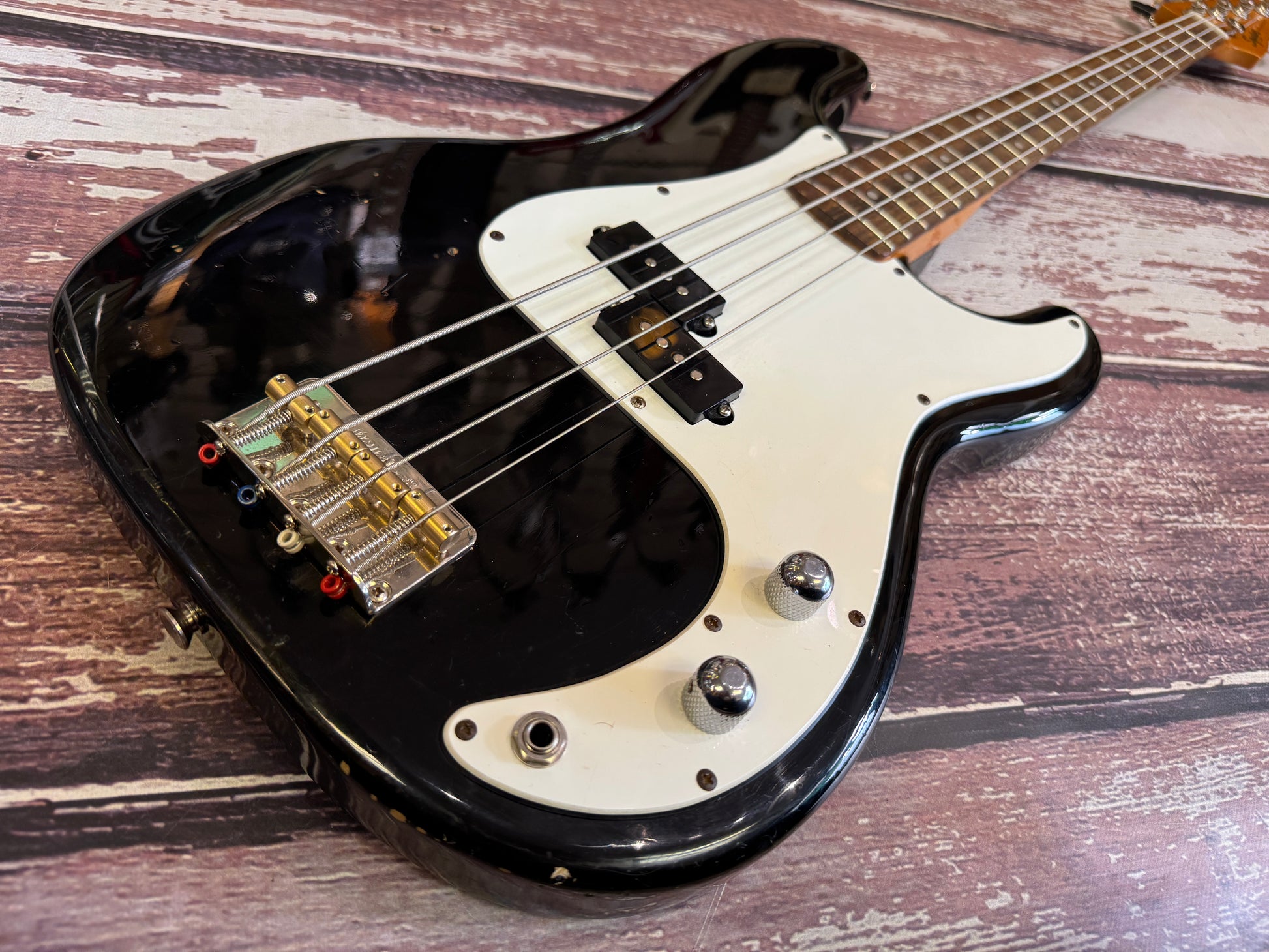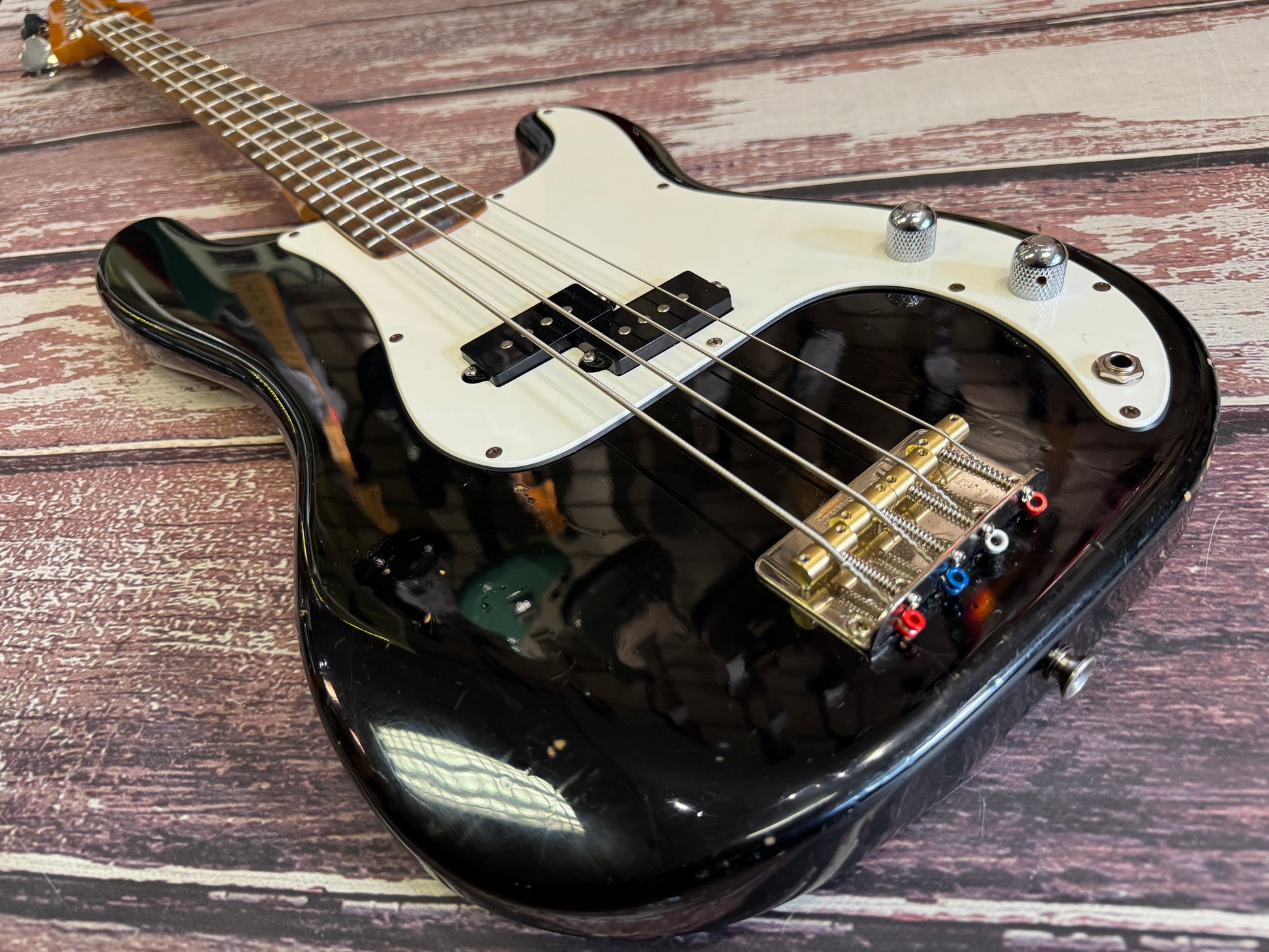 So, what do we have here exactly? This started life as a Fender licensed P-Bass made in India in 1990, branded Sunn Mustang. Since then the neck has been replaced with a Squier classic vibe one. We do also have the original neck and can include this in the sale.