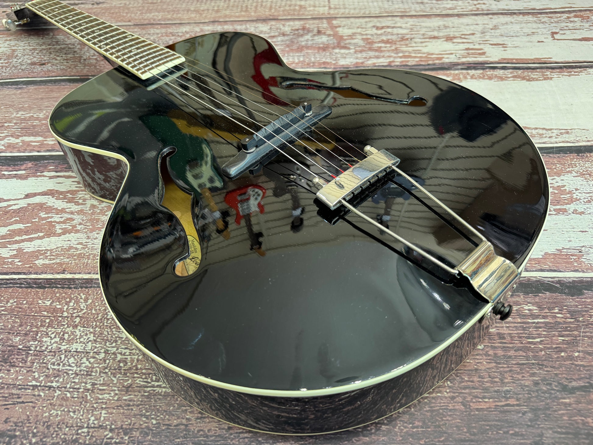 If you fancy trying a bit of traditional acoustic jazz, without breaking the bank this is the perfect guitar, with a great reputation this Loar 300 is a well finished instrument with arched body and "F" holes, finished in gloss piano black.