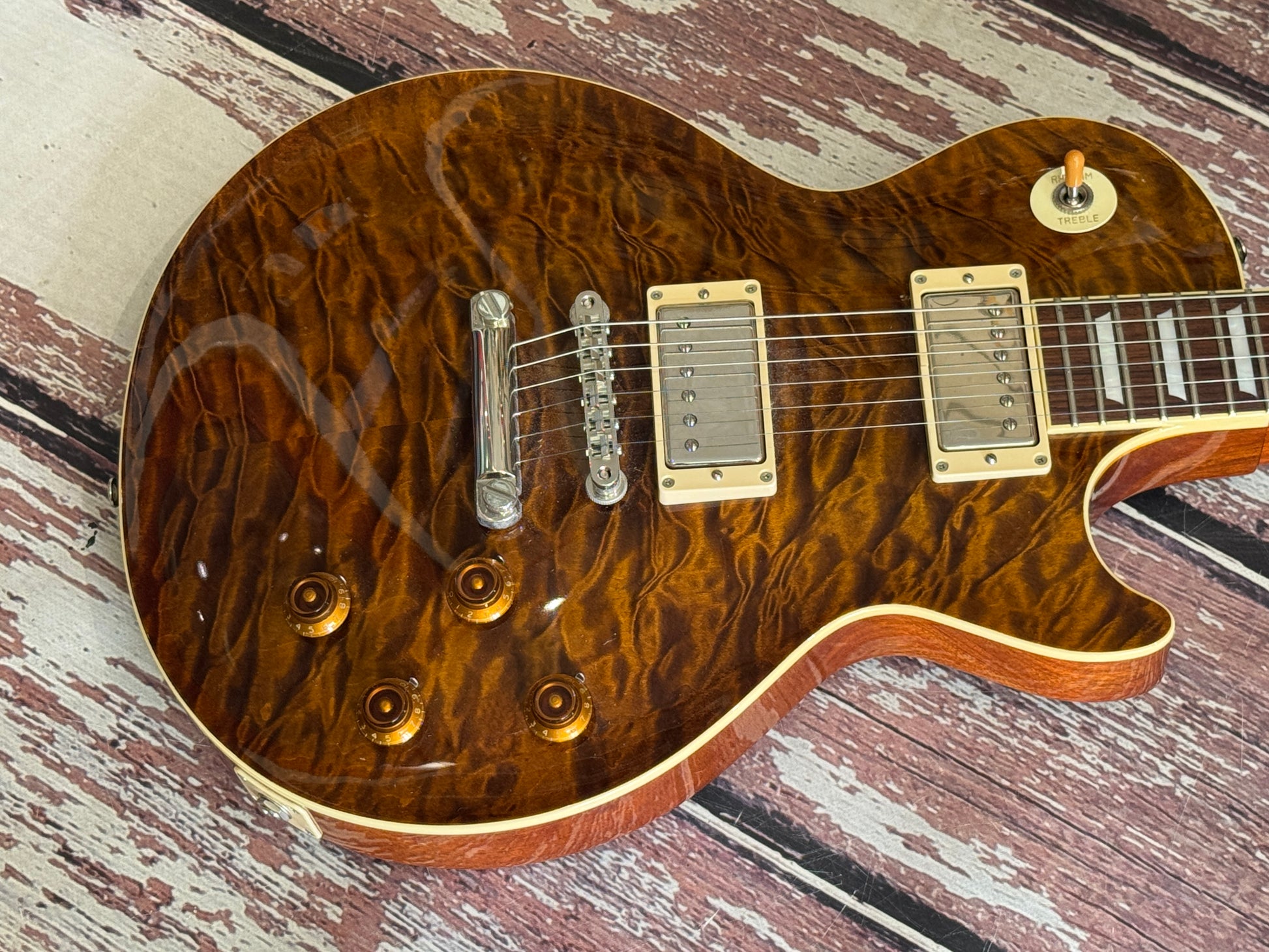 I remember this guitar well, we supplied it back in 2016 and it is such a stunning top it is impossible to forget, catalogued as "Oak quilt" it is a beautiful LP style built to a standard, dare I say it, better than the USA company are making today as their "standards"
