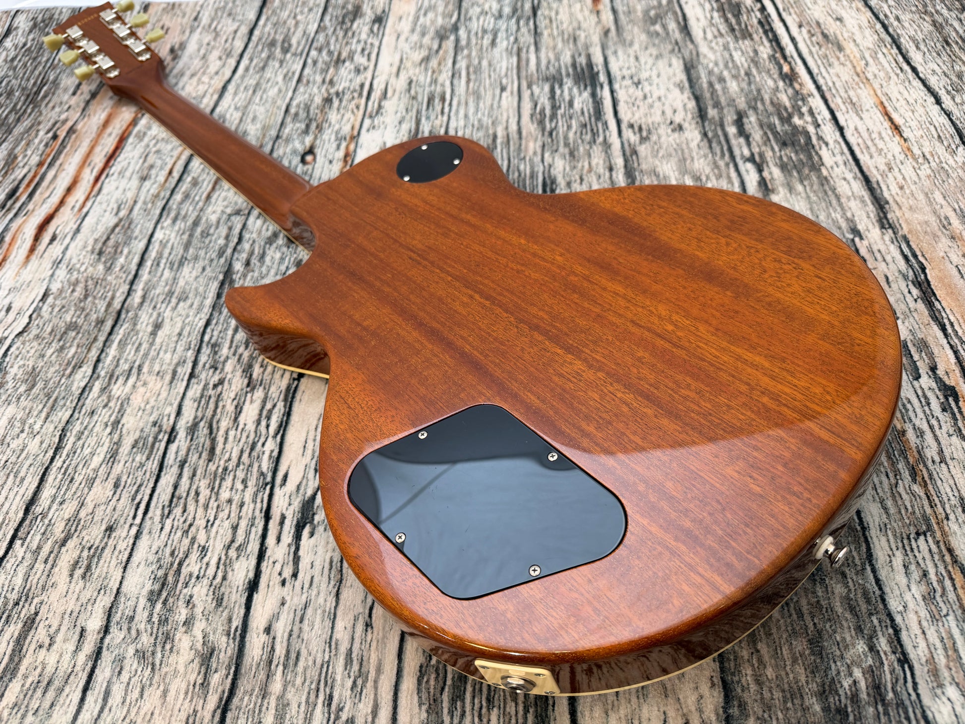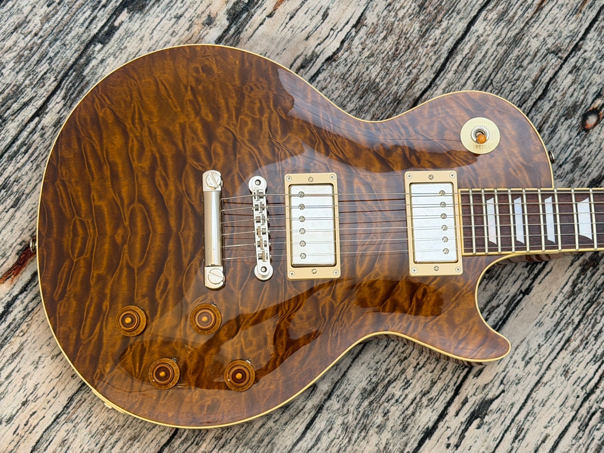 I remember this guitar well, we supplied it back in 2016 and it is such a stunning top it is impossible to forget, catalogued as "Oak quilt" it is a beautiful LP style built to a standard, dare I say it, better than the USA company are making today as their "standards"