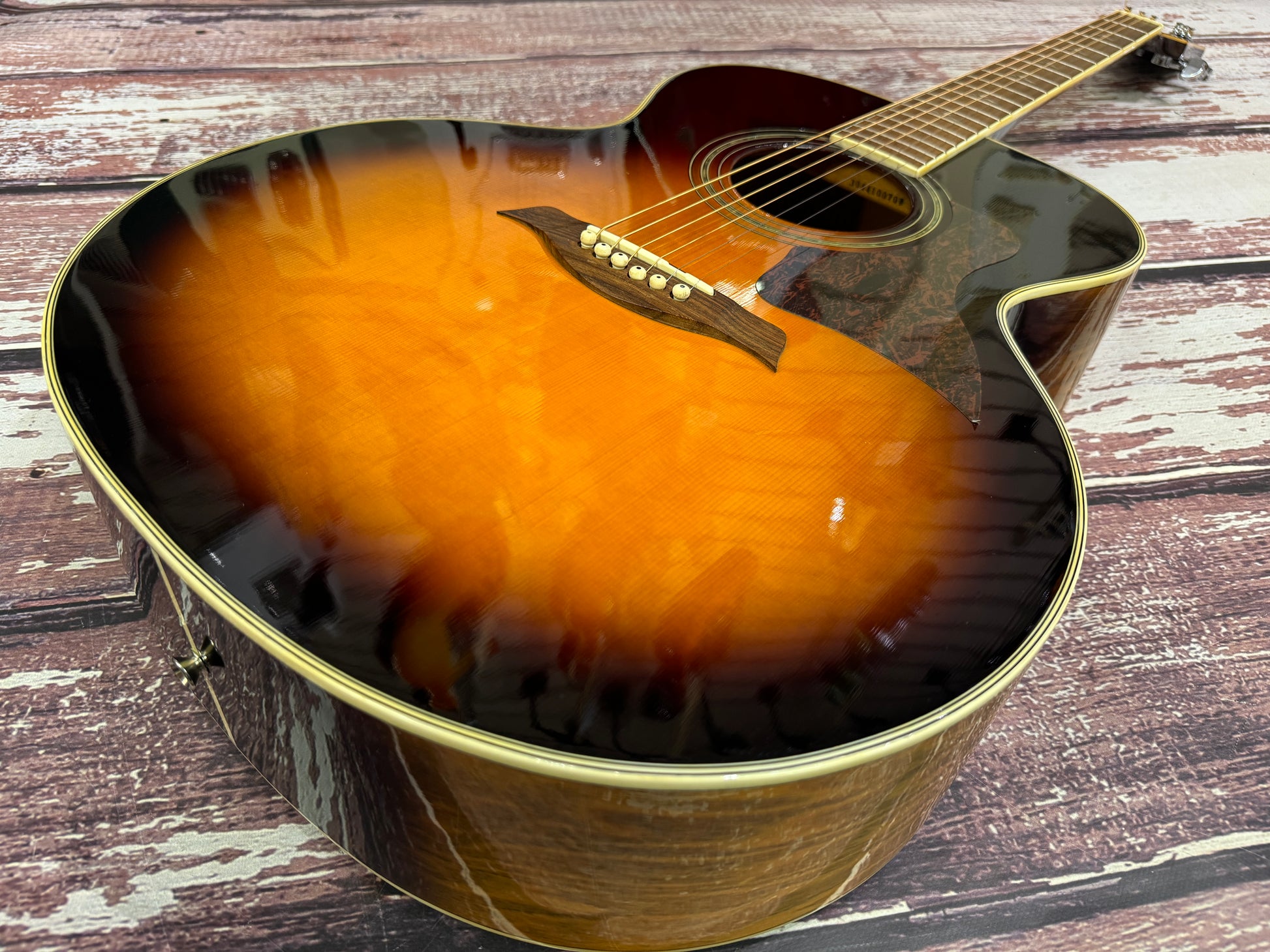 This one is a sweet Turner guitar, with a solid top and stunning figuring on the back and sides. This is a nice honest clean example, I think it is about 10 years old and plays very well indeed.