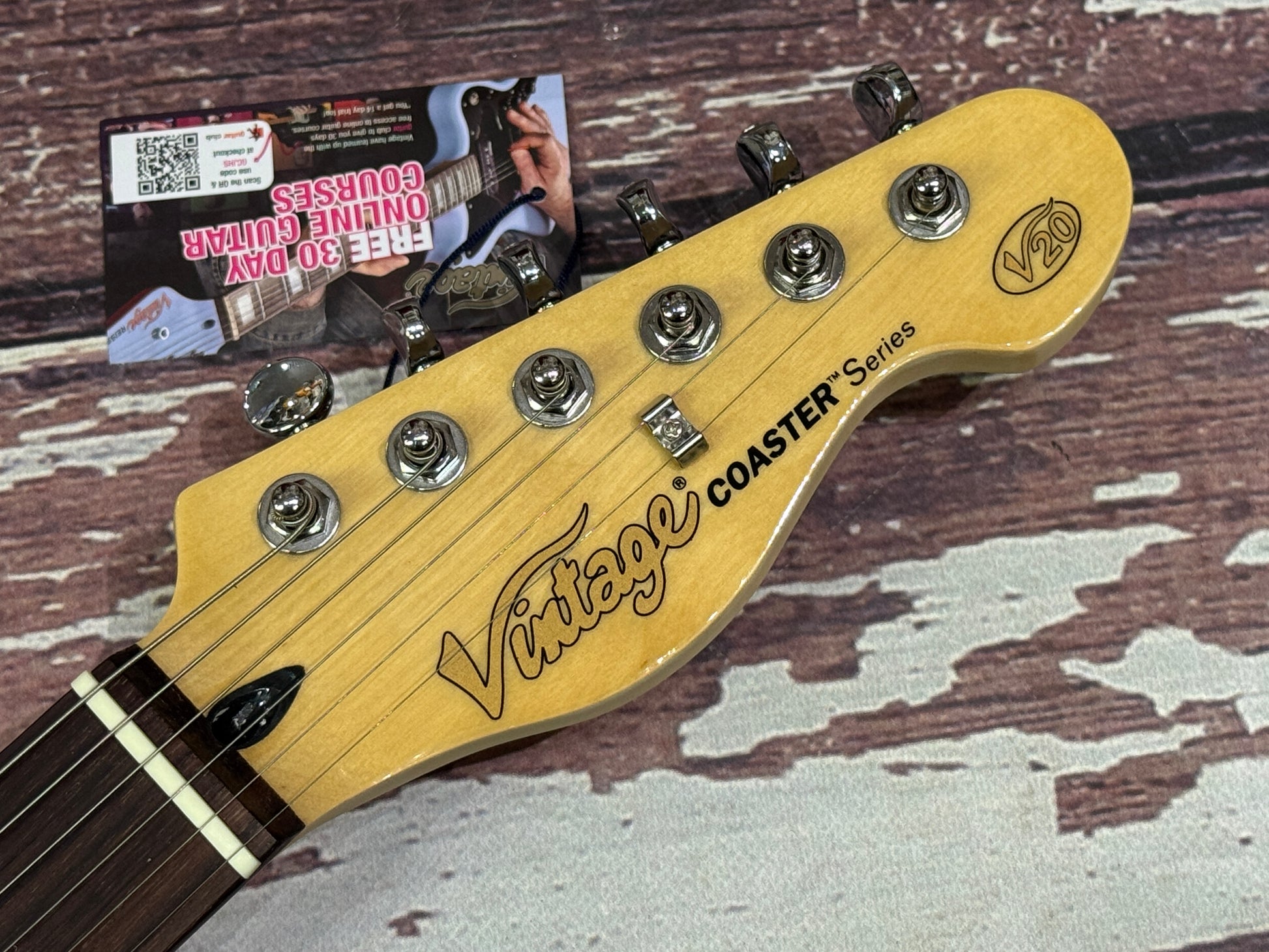 With a stunning finish, offset with single ply scratch plate and chrome hardware the Vintage Coaster V20 single cutaway, solid bodied electric guitar is a fine example.