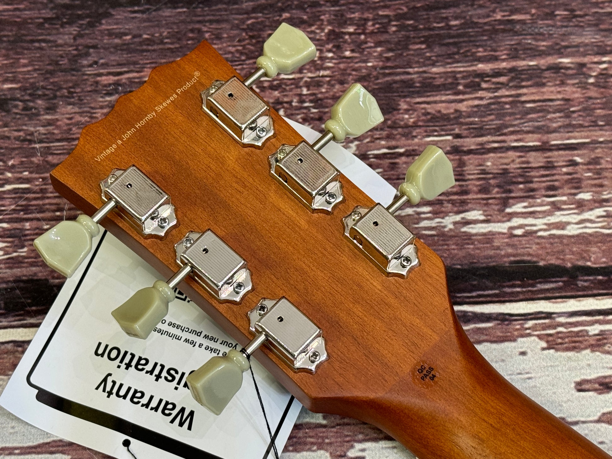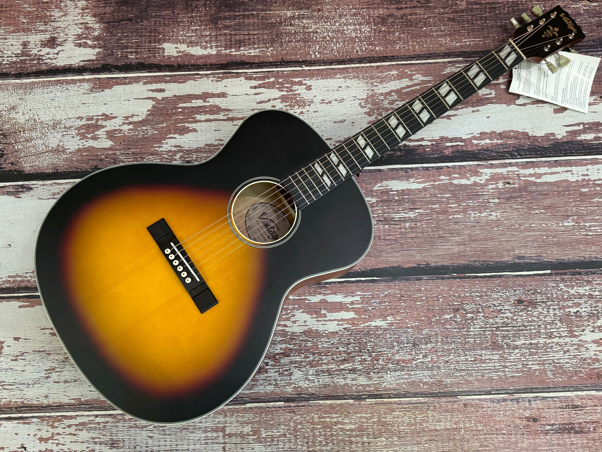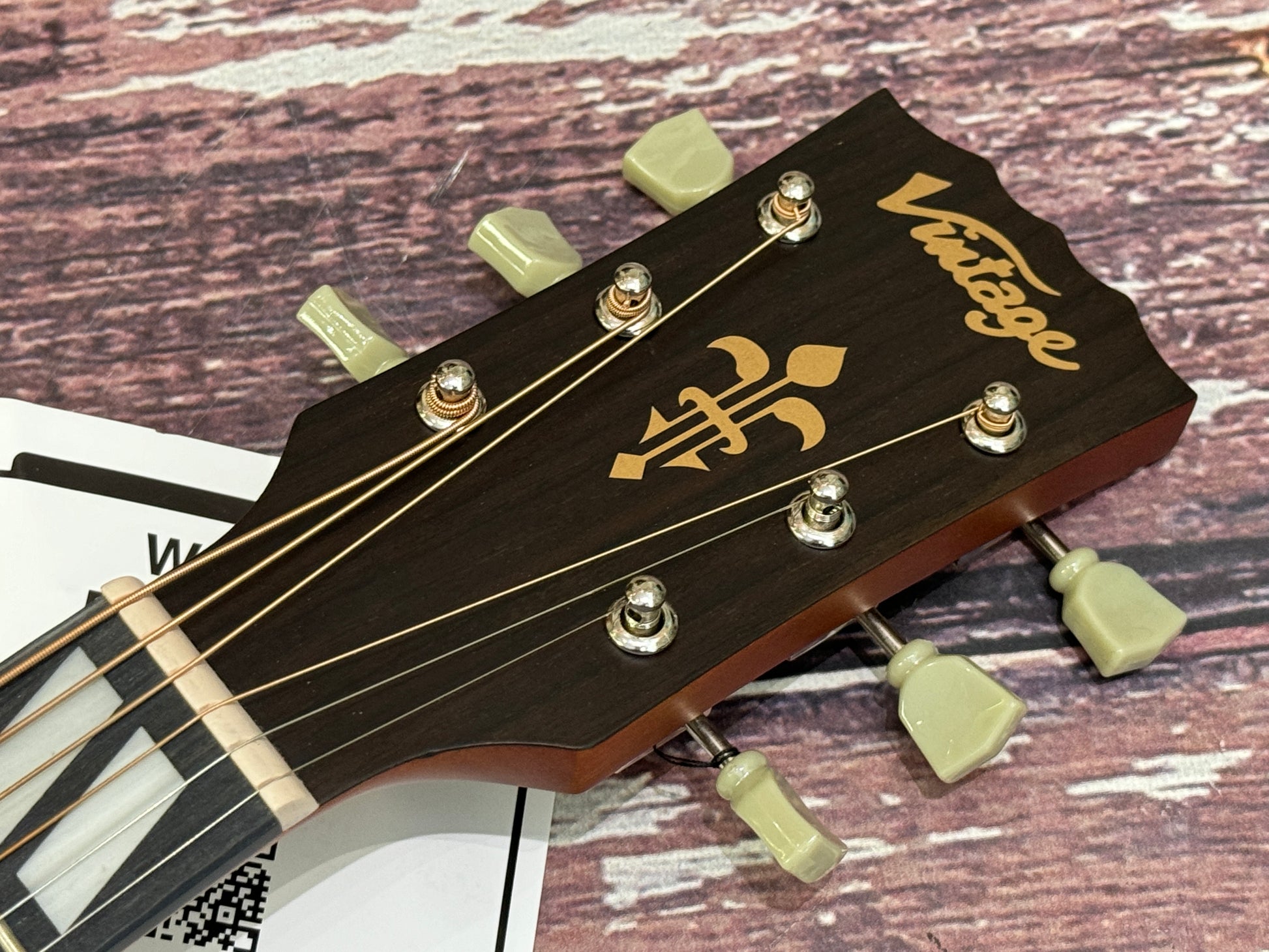 With a beautiful satin top coat over a gorgeous Vintage Sunburst finish, the Vintage Historic Series Orchestra acoustic guitar, radiates class in every sense of the word.
