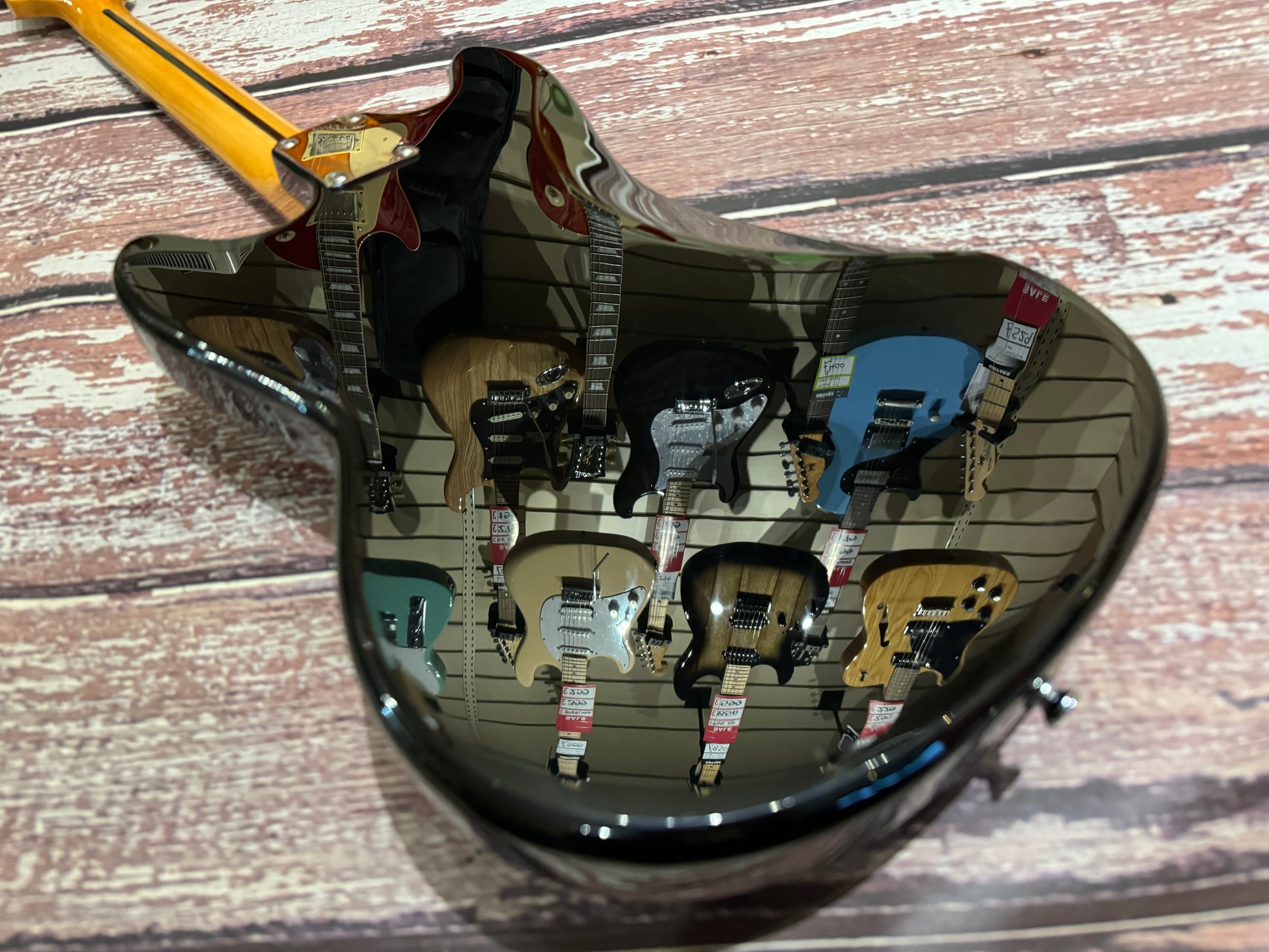 This one is being sold as "B" stock grading as there are some scratches on the chrome bridge plate from where it was strung in the factory, so it is 100% new and guaranteed but with a very minor mark.