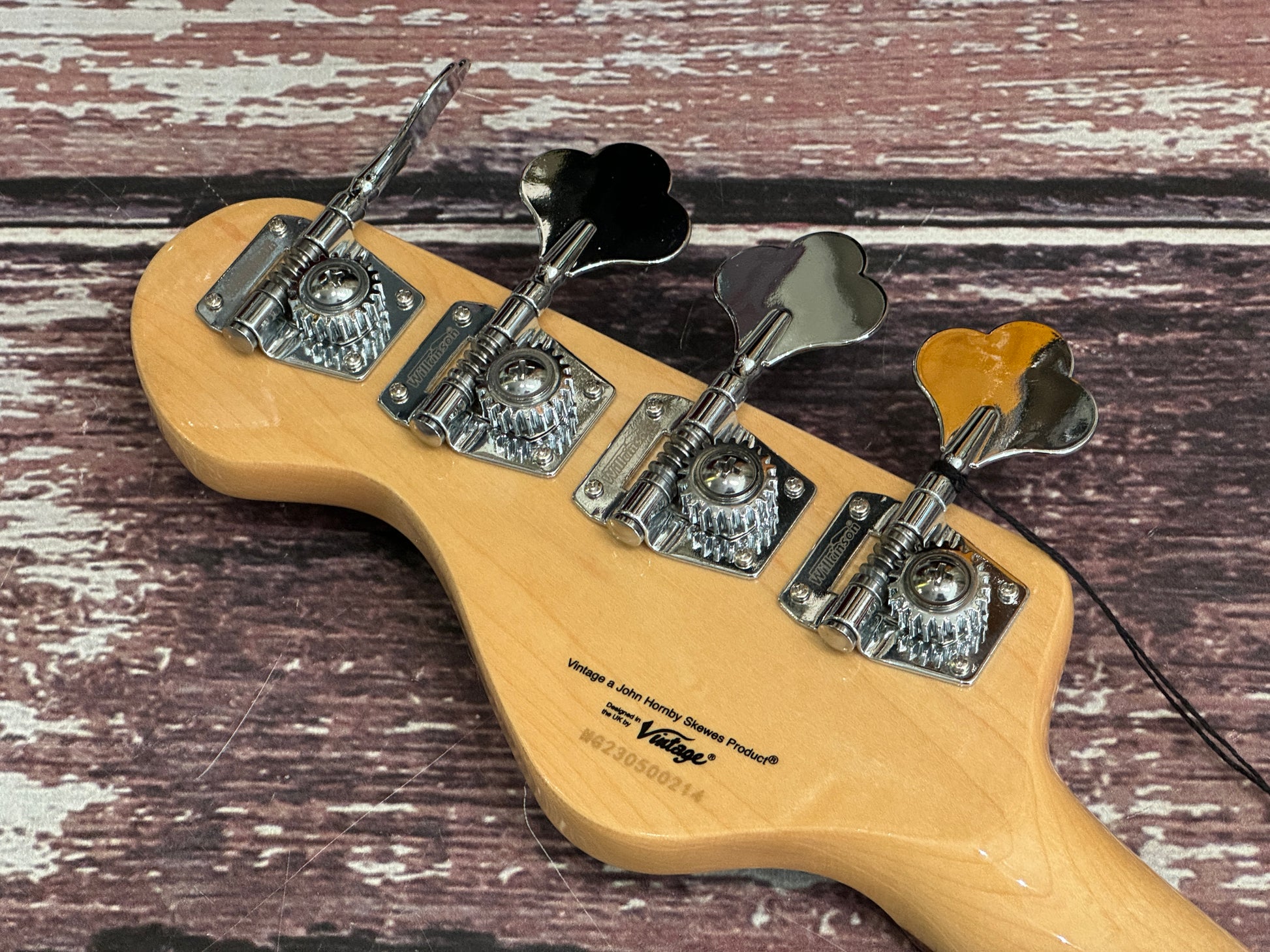 Classic Vintage headstock design for balance and visual appeal.