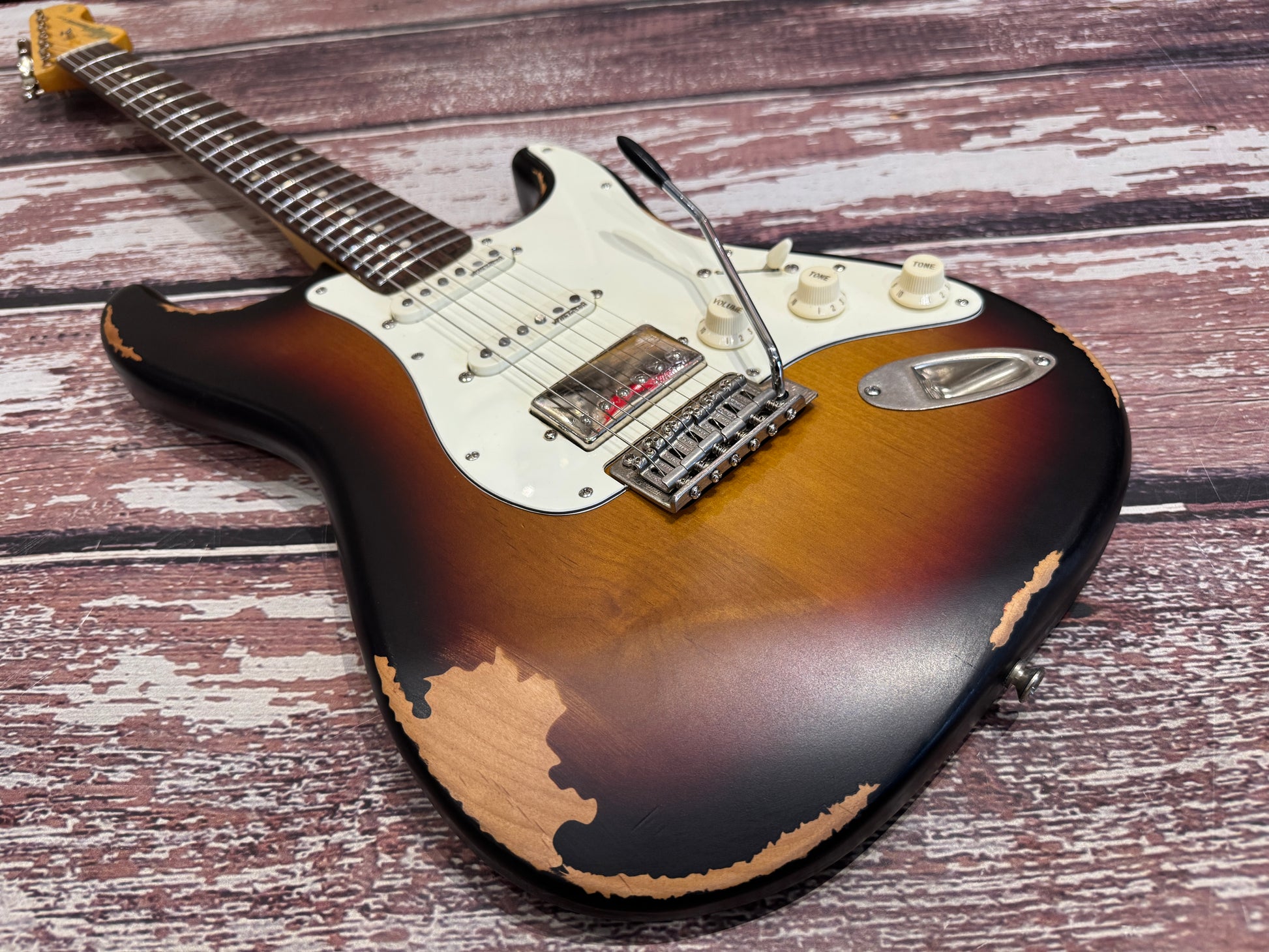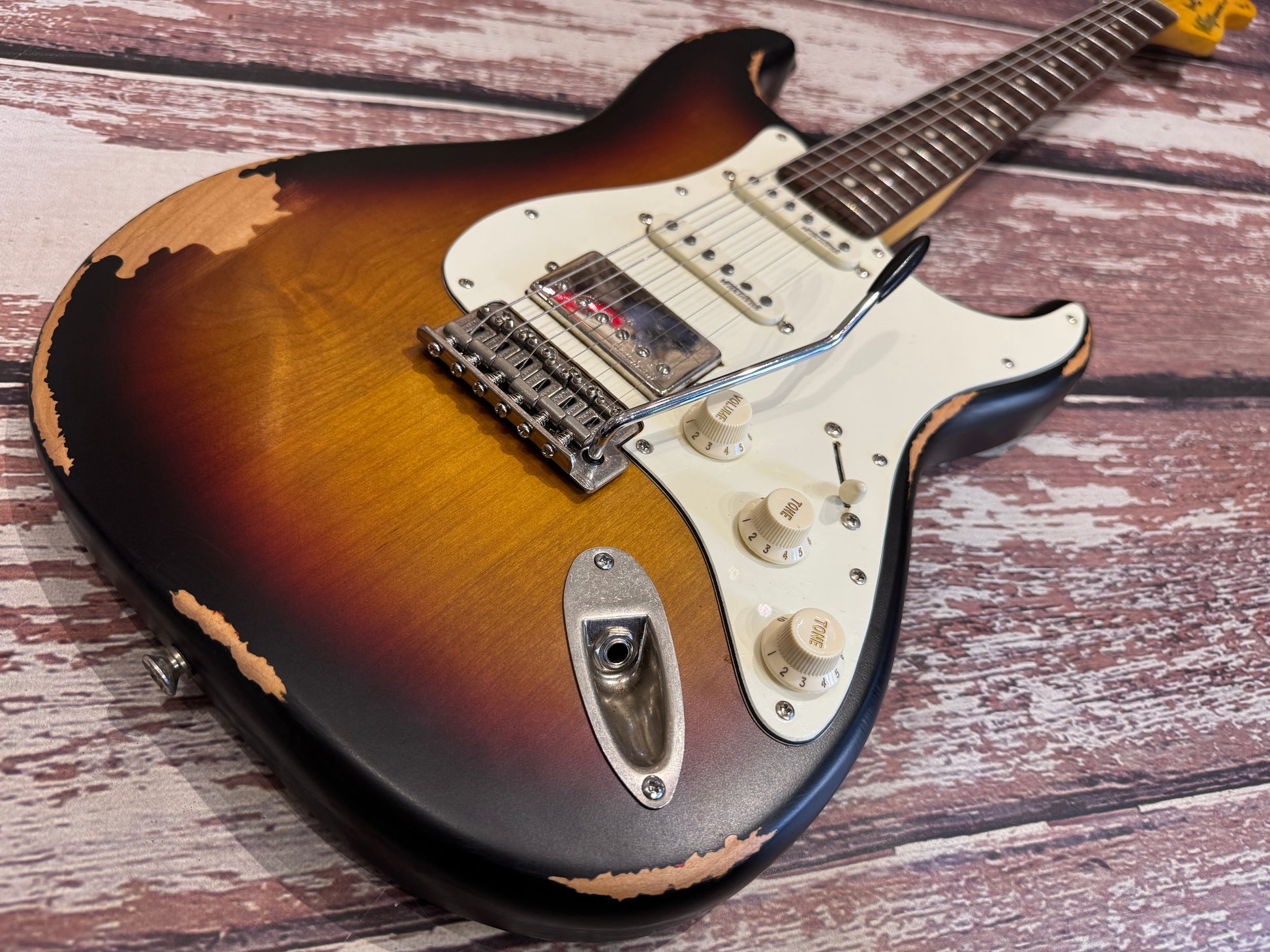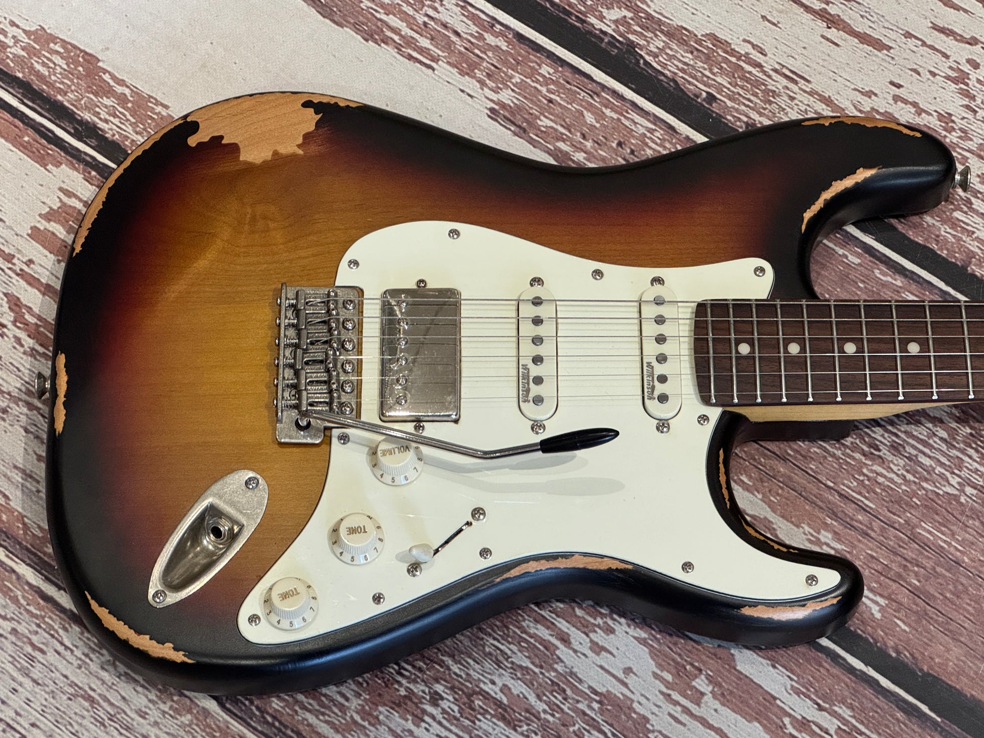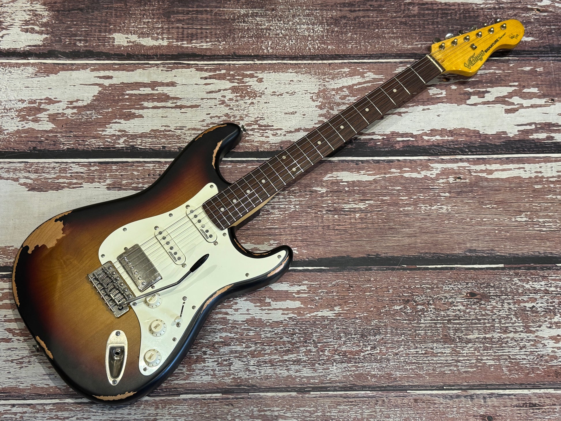 Another winner from the Vintage team, this lovely HSS "S" style sunburst relic has both the looks and the performance, the HSS layout offers versatility and the great finishing makes this a very comfy, playable guitar indeed.