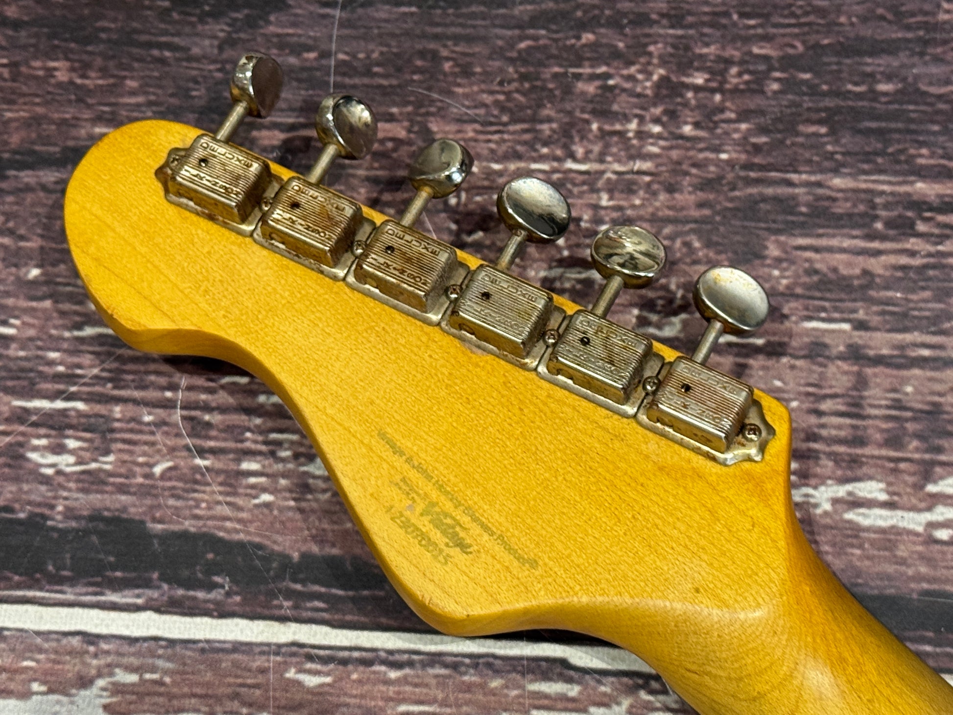 The Wilkinson WVC vibrato bridge featured on the Vintage V6 is a masterpiece of detail. Positive location, 6 screw design provides return to pitch accuracy; perpendicular bend, high grade steel saddles enhance tonality and ‘snap’. Ground base plate corner provides authentic looks. Stagger drilled cast block significantly enhances return to pitch accuracy and classic vintage tone. The ‘push-in’ Delrin-bushed arm with variable tension provides the arm feel that suits your style.