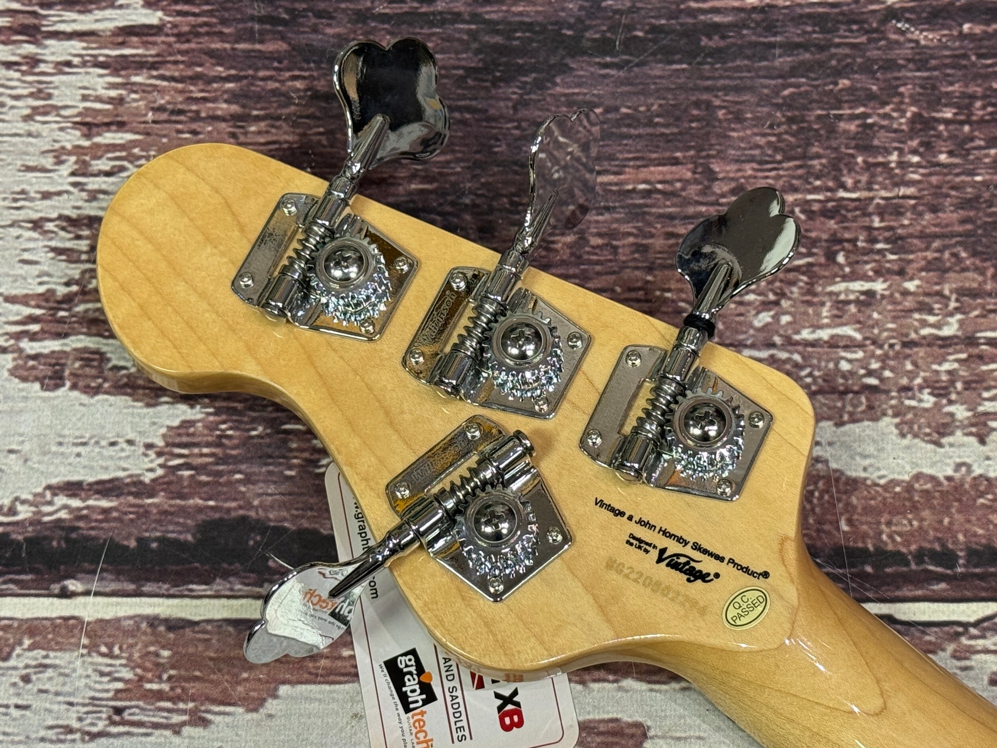 The Vintage V96 Active Bass signifies the whole concept of a well made 4 string bass guitar, offering exceptional playability and a full dynamic tonal range.