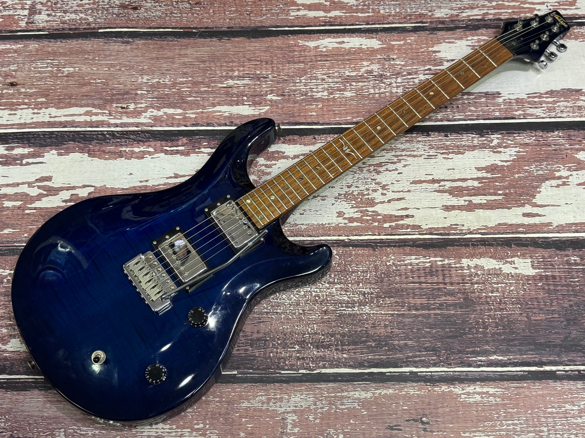 This is a copy of a "PRS" style from the guys at Vintage, and it has to be said these are excellent guitars, loaded with all Wilkinson parts you know it isn't entry level, even though our price might suggest this!