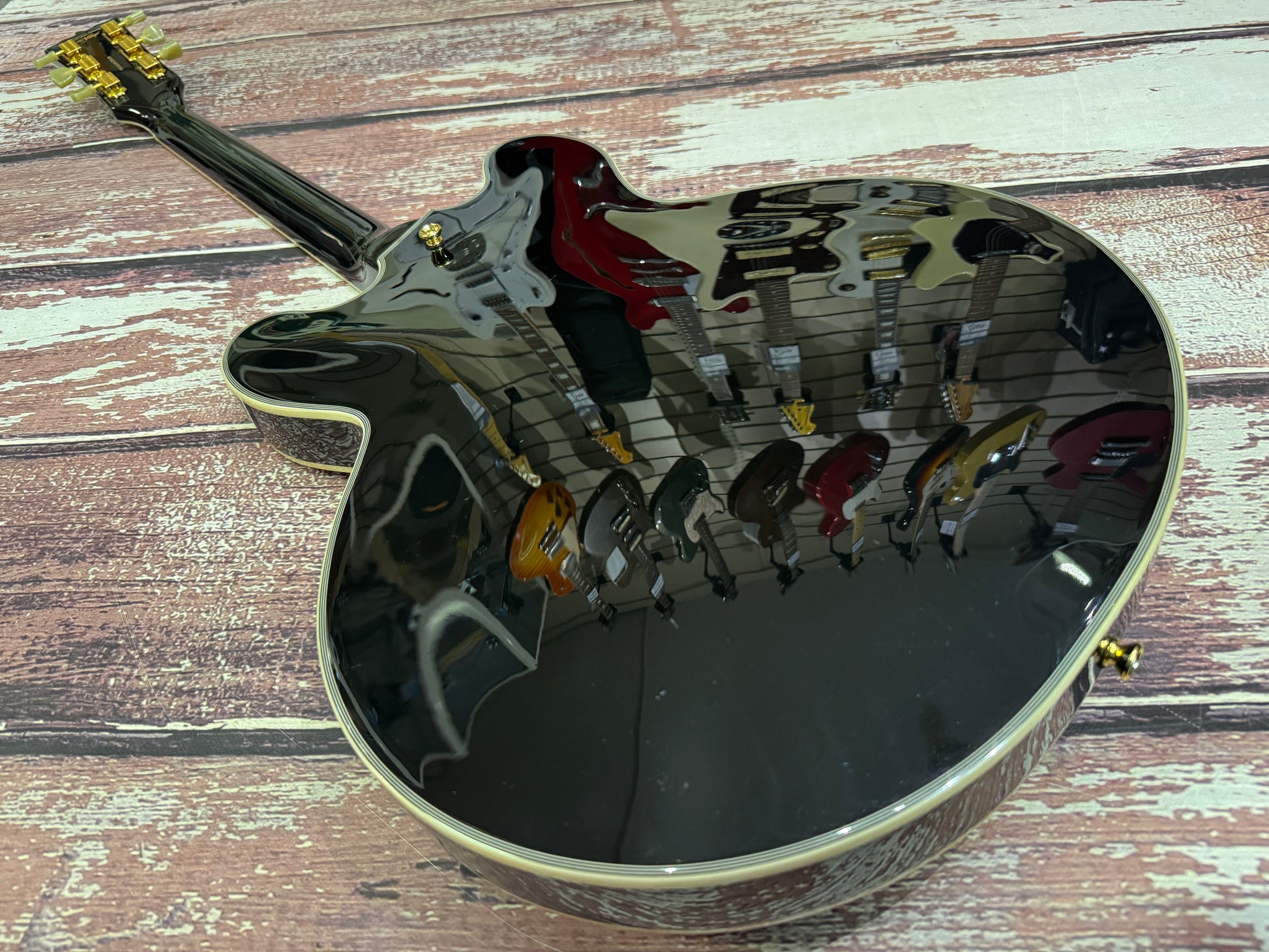 If you love a Gibson 335 but haven't had that big lottery win yet, there are many budget options out there, and Vintage are among the front runners.This black model with gold hardware is a striking guitar indeed.