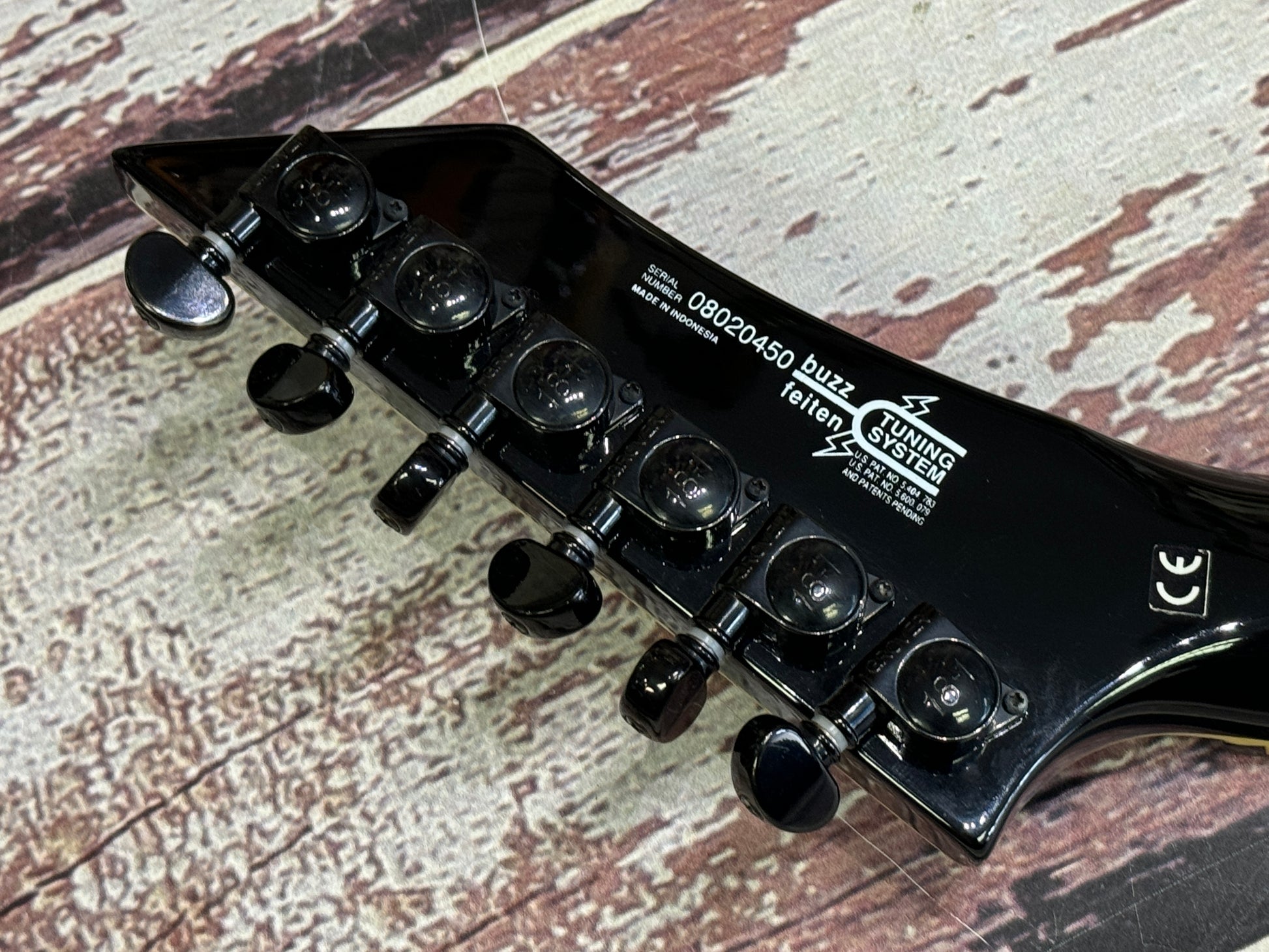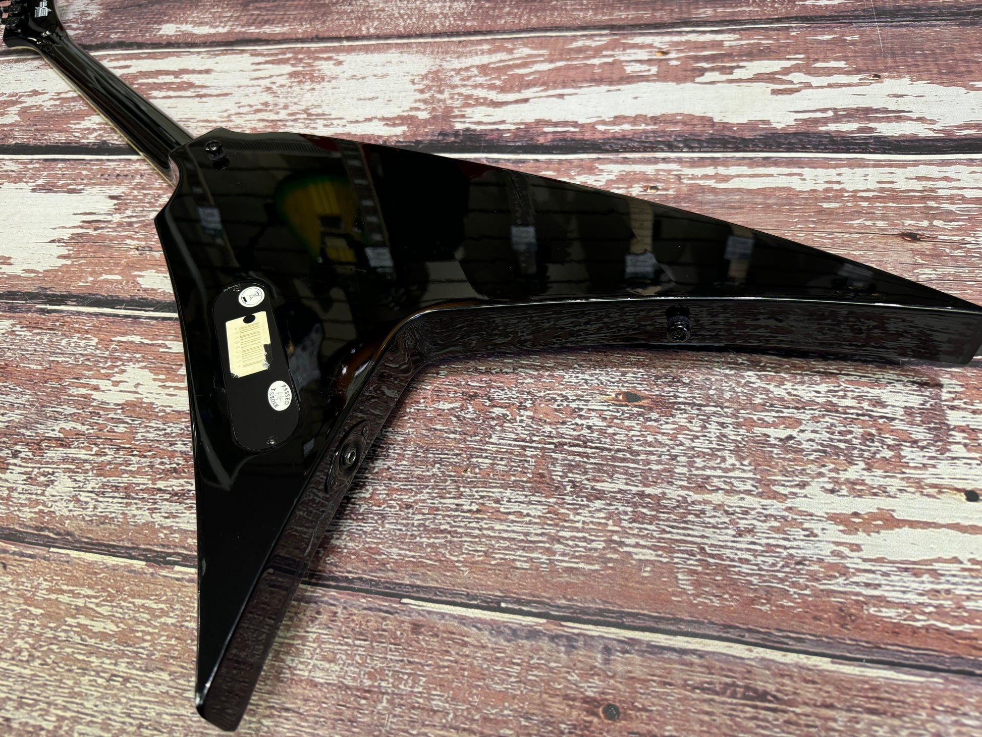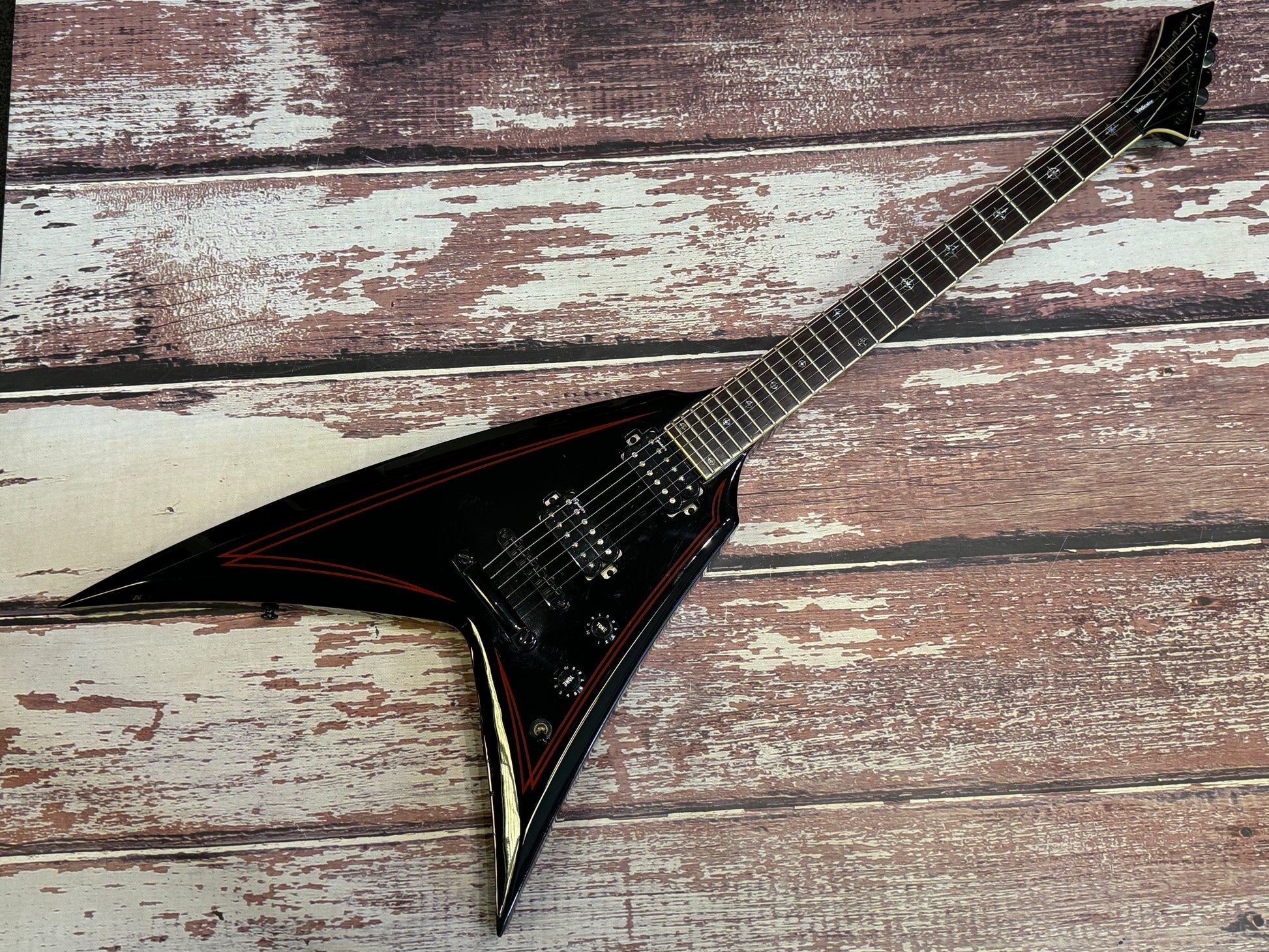 Looking suspiciously like a Randy Rhodes "V", this was the Vindicator model from Washburn. These were around in the early 2000's and fast became a metal favourite, combining extreme looks with a pair of Egnator humbuckers, single volume and tone and a 3 way pickup selector.