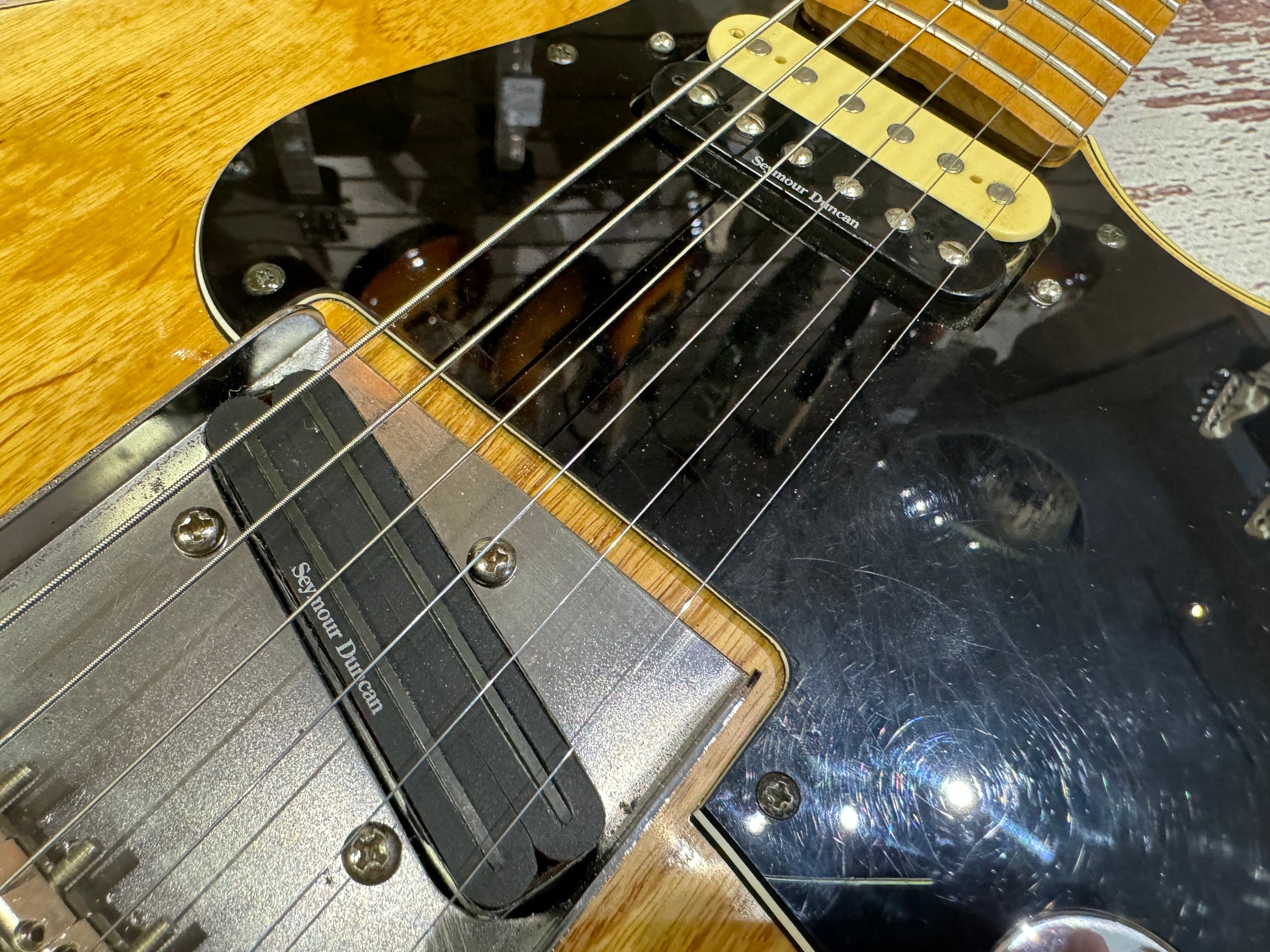 You get a stunning ash body with maple neck, Seymour Duncan 59 at the neck and a hot rails at the bridge, a 3 way switch, Yamahas own 6 saddle bridge, and a comfort cut for your arm.