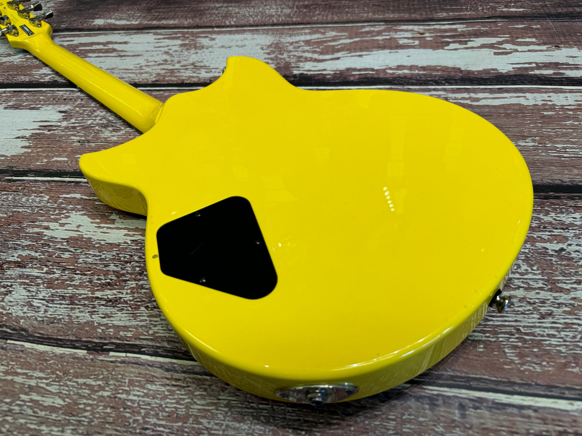 This one has a small chip by the plate on the back and a couple of very minor scuffs. All the important parts are good, solid tuners, frets are good, all electrics working fine and it is ready to rock!